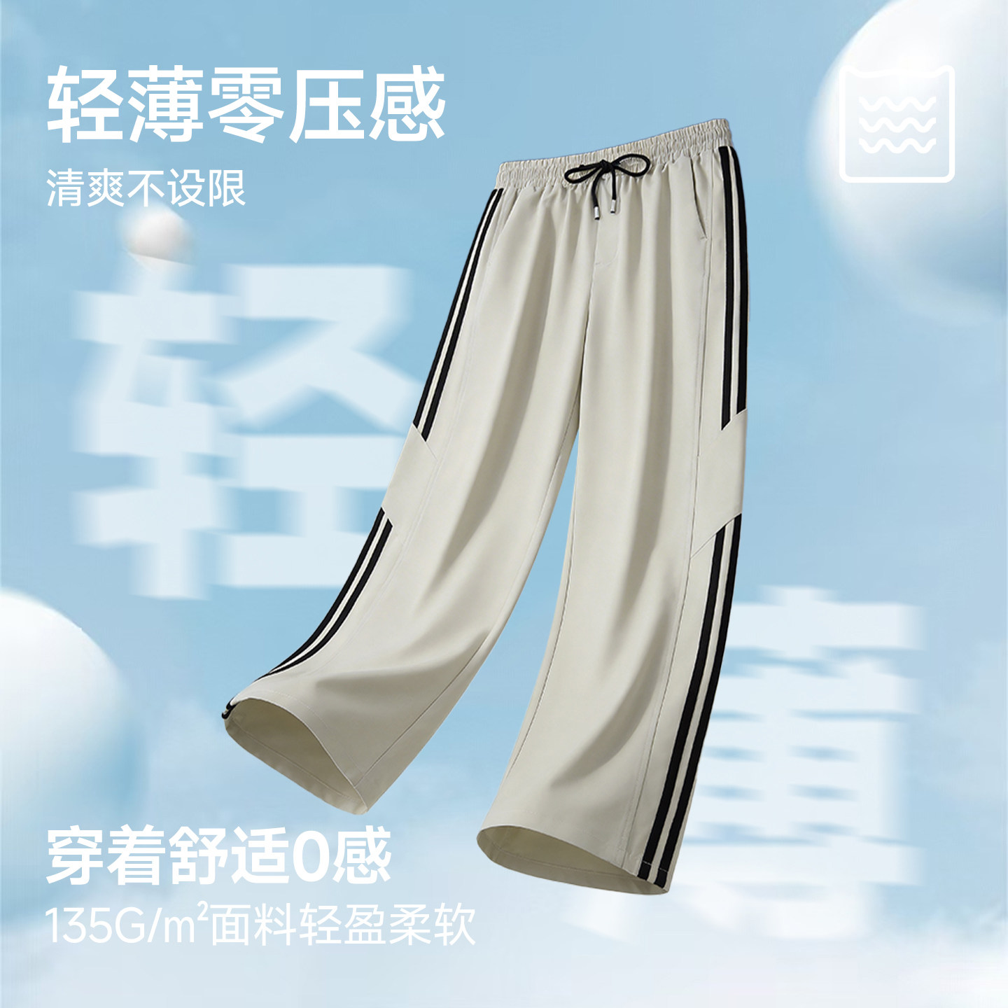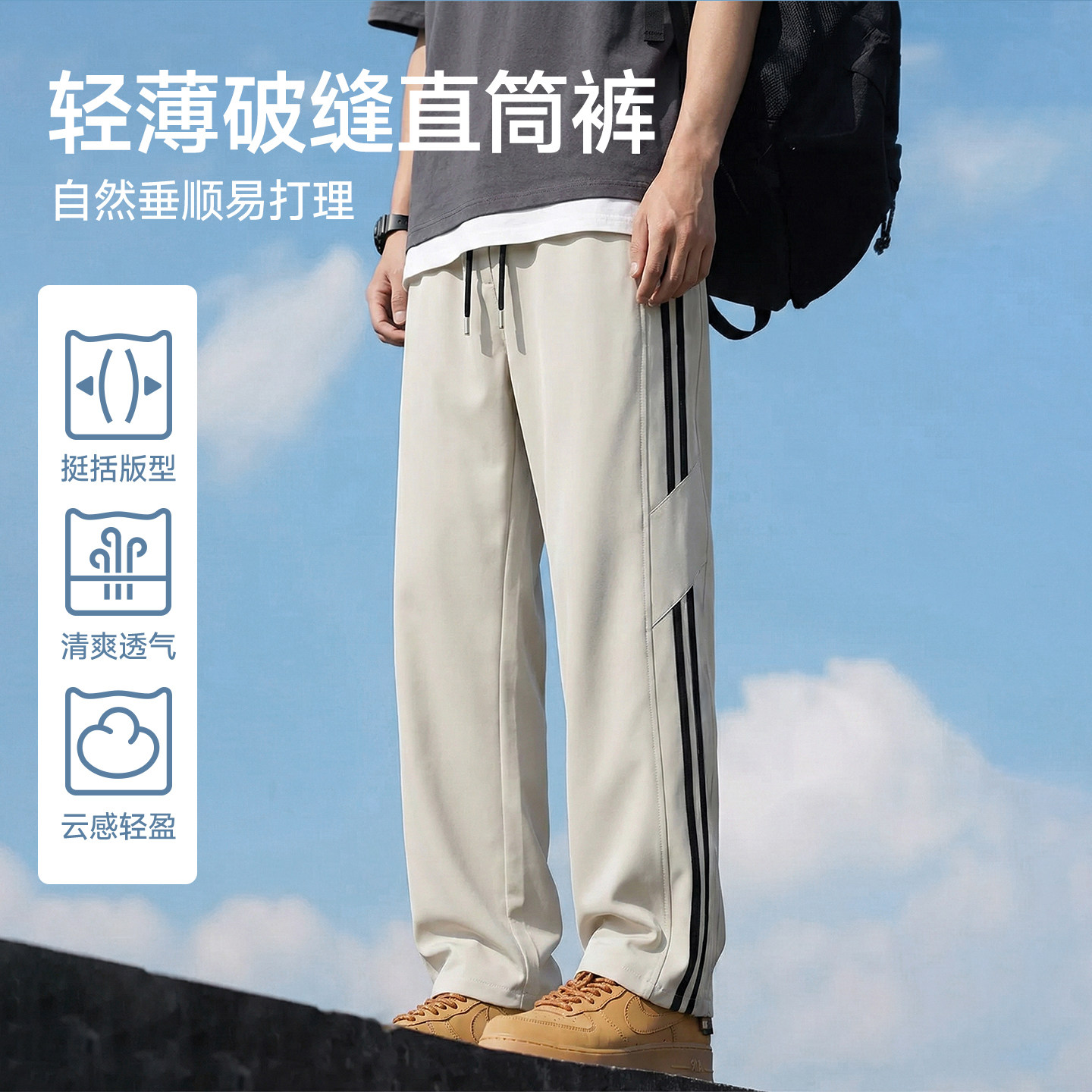 猫人裤子男款2026新款宽松直筒条纹休闲裤青少年春夏梭织长裤男J