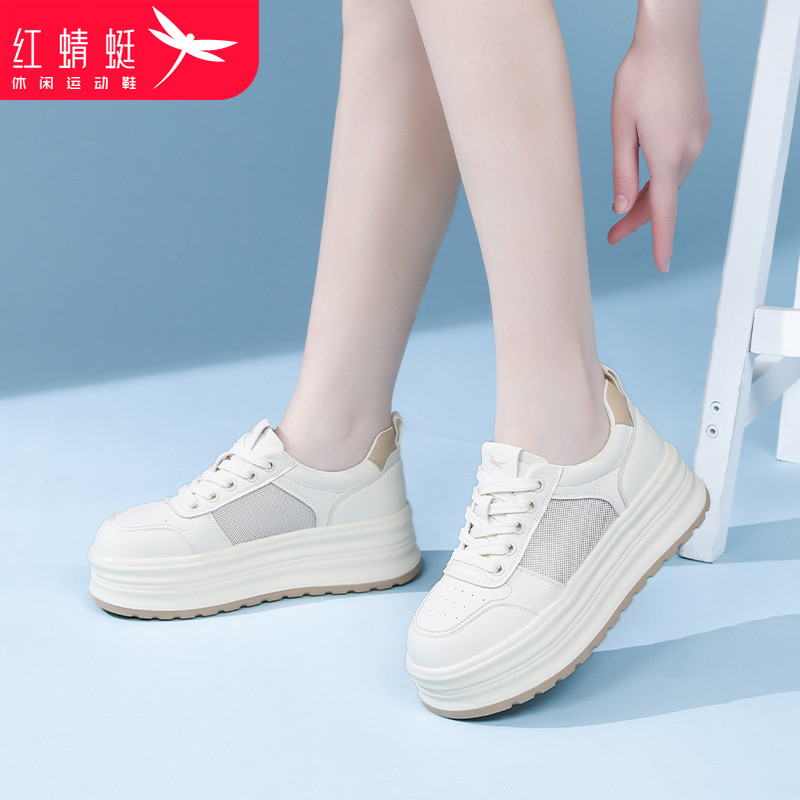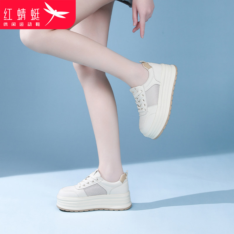 311线报网描述:红蜻蜓夏季网面厚底小白鞋板鞋单鞋透气
