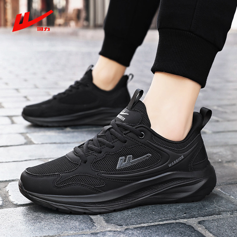 回力男鞋春季新款跑步鞋黑色透气运动鞋子男士回弹慢网面跑鞋缓震