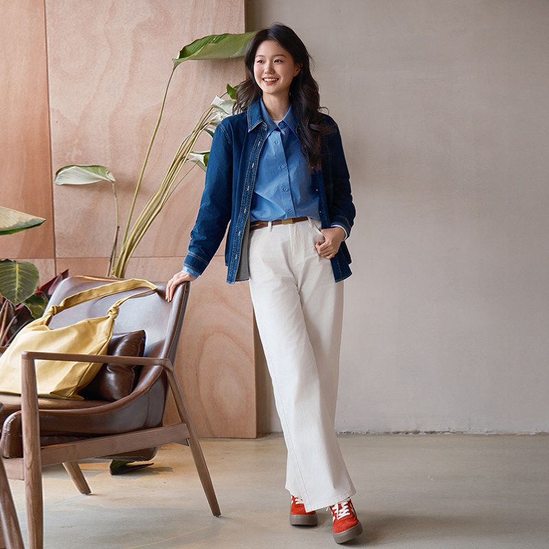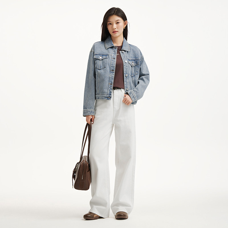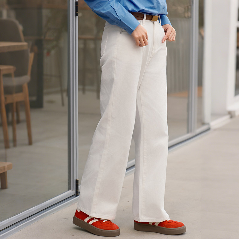 热风女士白色牛仔裤2026年春季新款休闲直筒宽松阔腿春秋牛仔裤