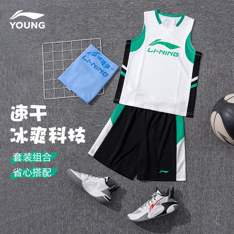 李宁男童篮球服套装男童26夏季新款吸汗速干凉爽背心短裤运动服
