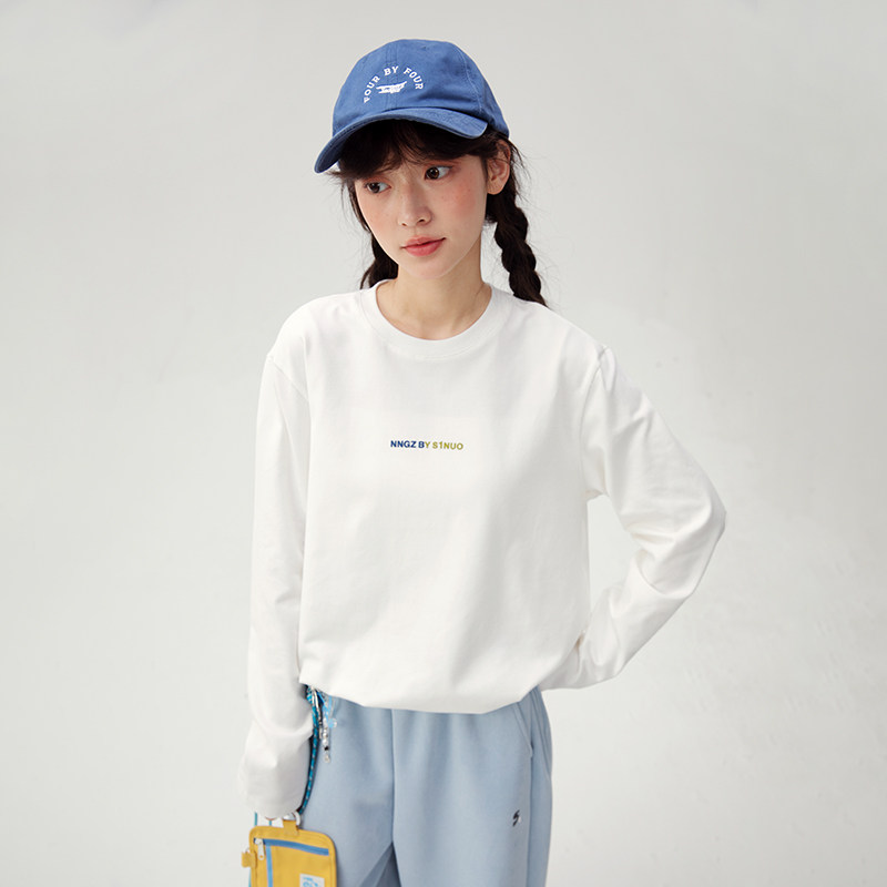 诺诺公主S1N初中生长袖T恤秋季新款绒面印花大童女装学生打底上衣