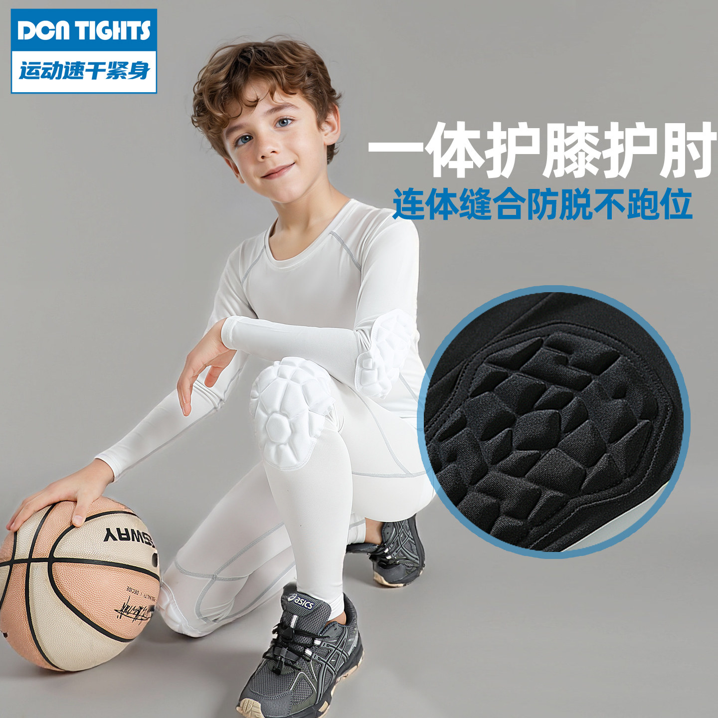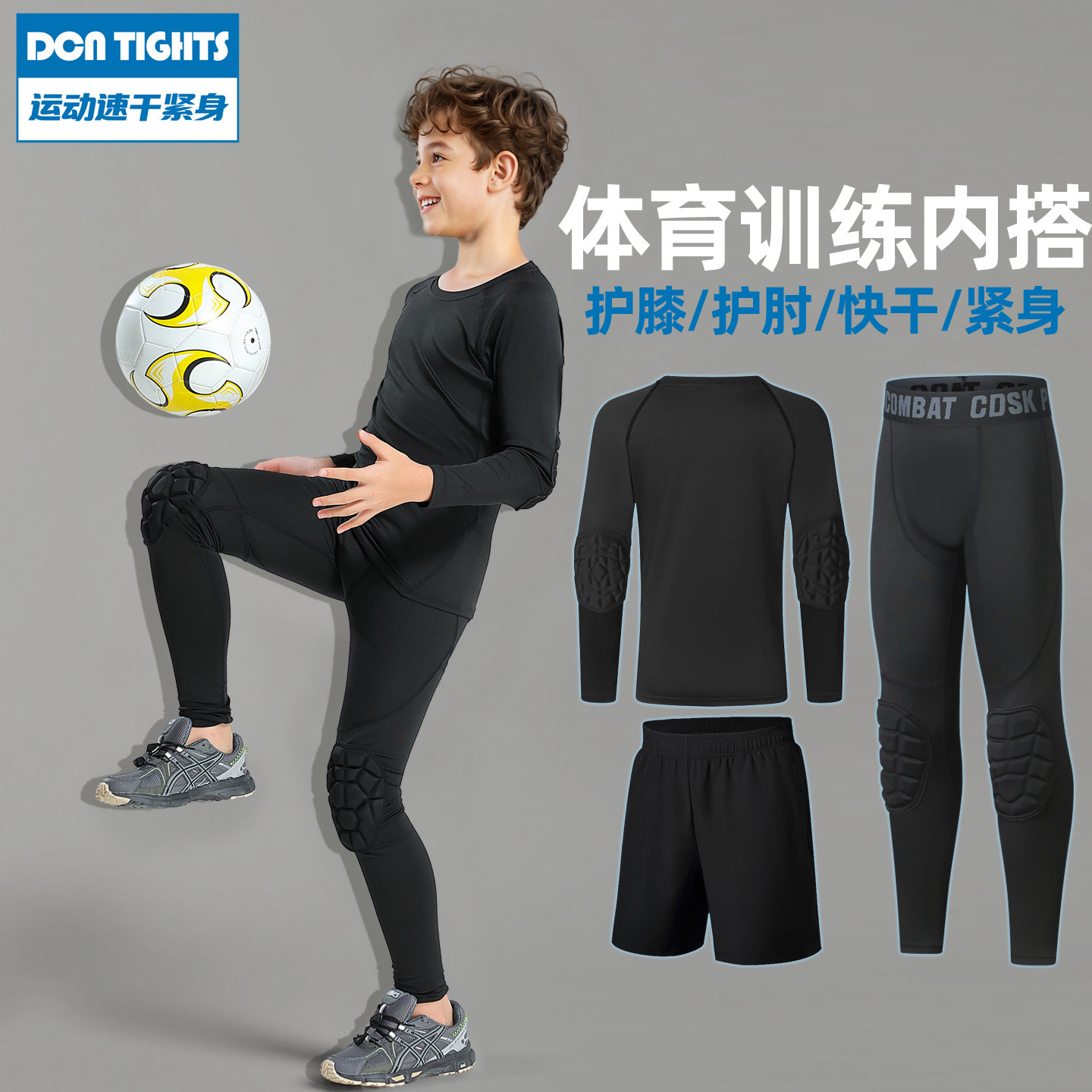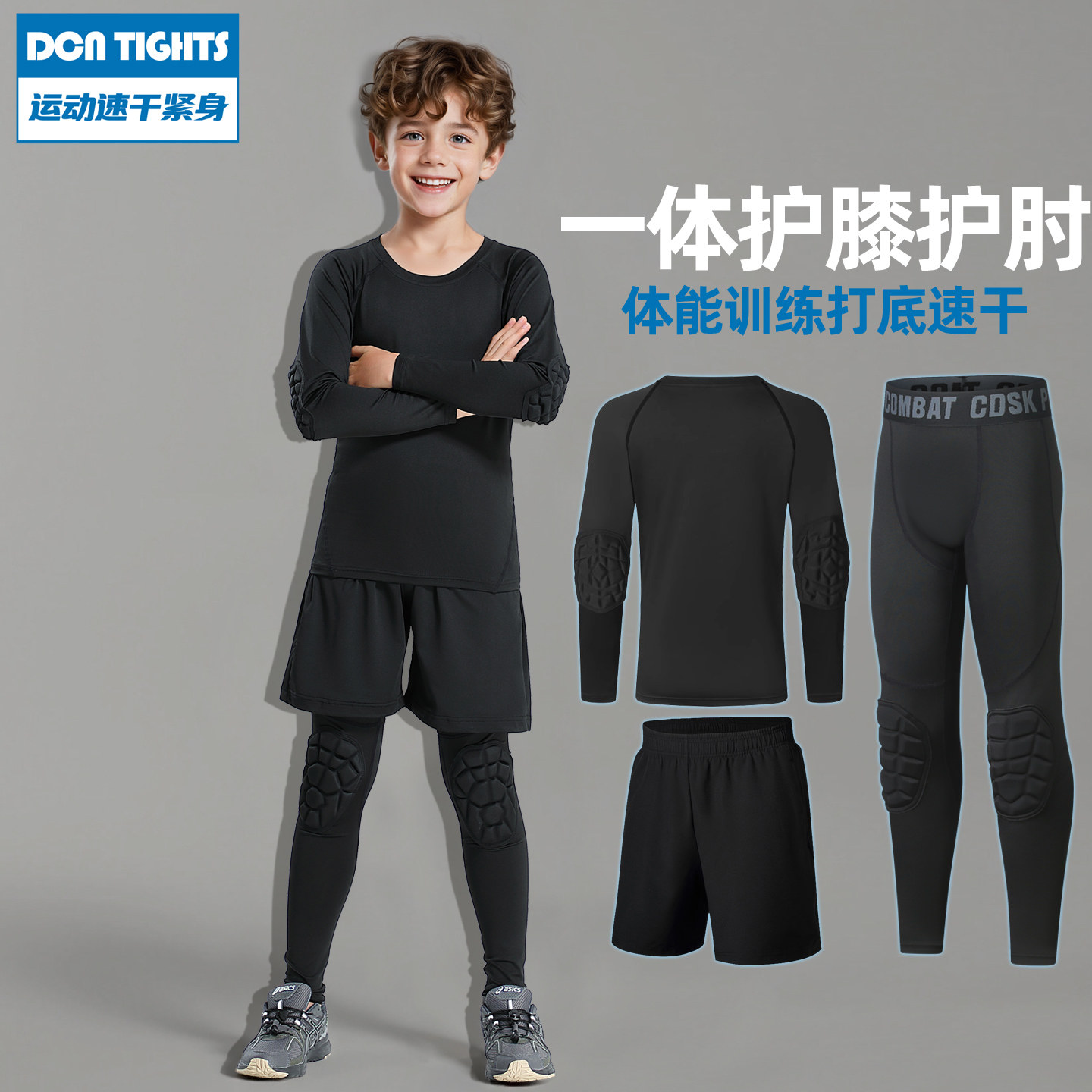 儿童体能训练服速干护肘紧身衣篮球打底裤带护膝防撞防摔运动套装