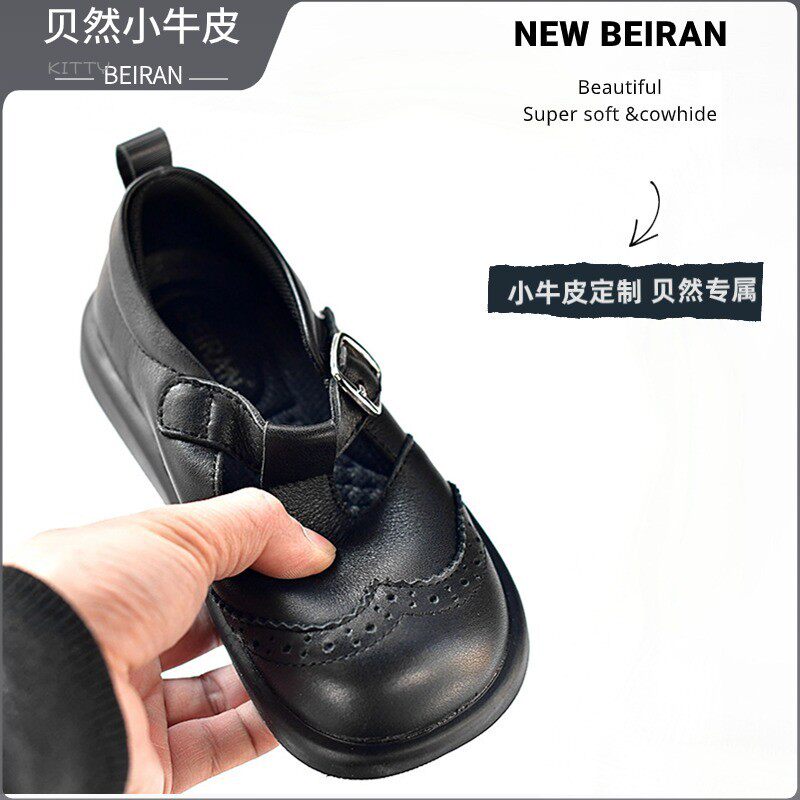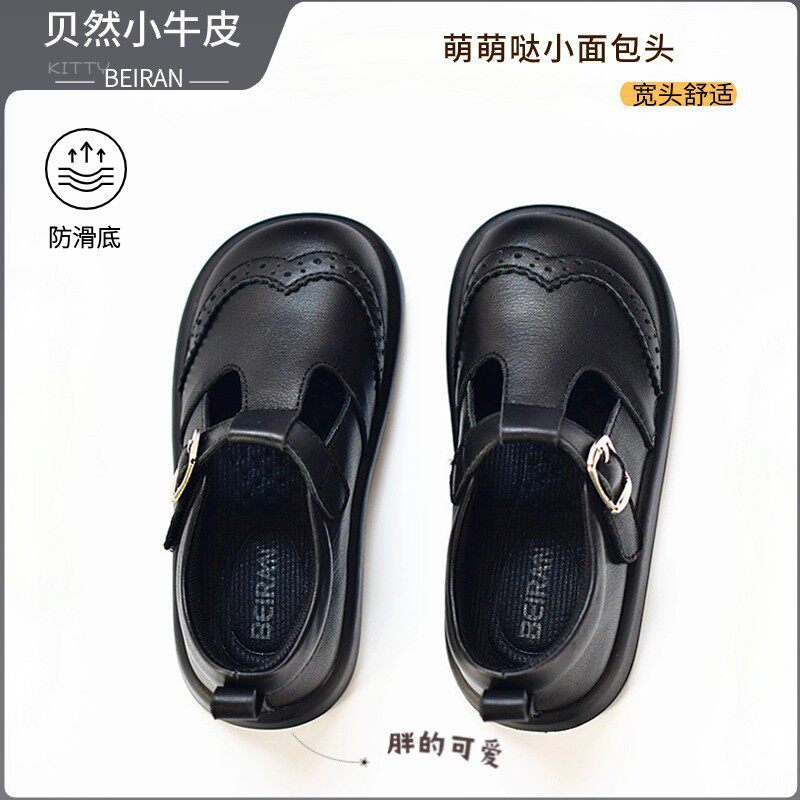 小女孩头层牛皮鞋黑色新款秋季公主鞋真皮英伦风女童宝宝演出单鞋