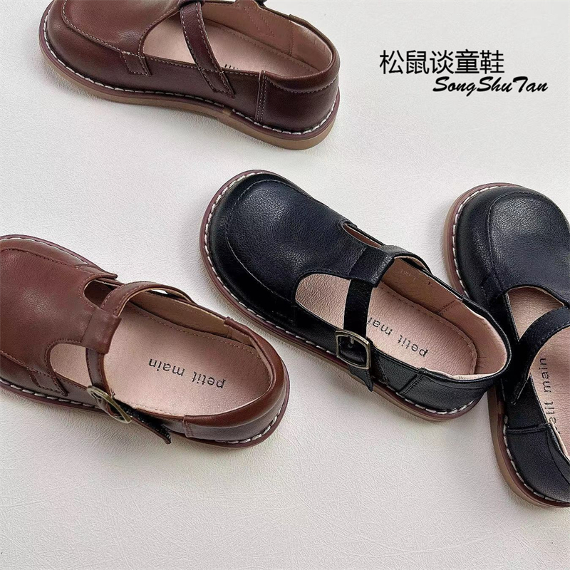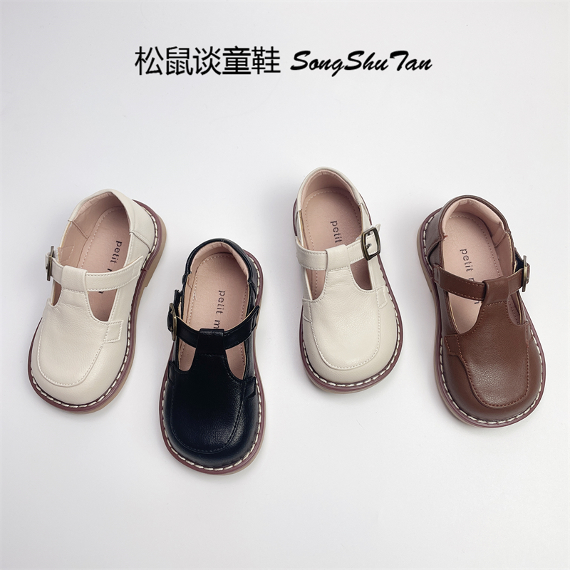 真牛皮儿童皮鞋男童黑色复古女童单鞋白色公主演出鞋礼服防滑软底