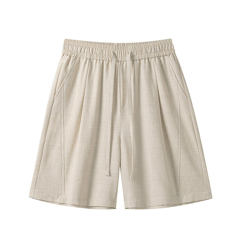 老钱风仿亚麻五分裤男夏季美式薄款宽松透气运动中裤男款外穿短裤