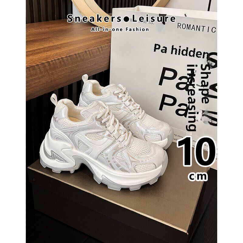 新品10cm内增高小个子老爹鞋女20C26年春季真皮厚底休闲8CM白色运