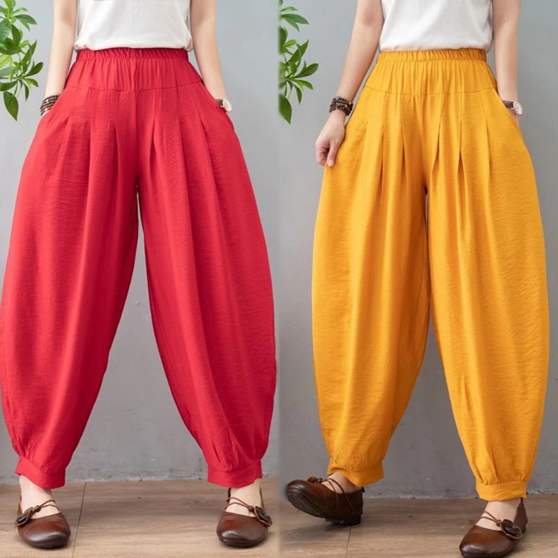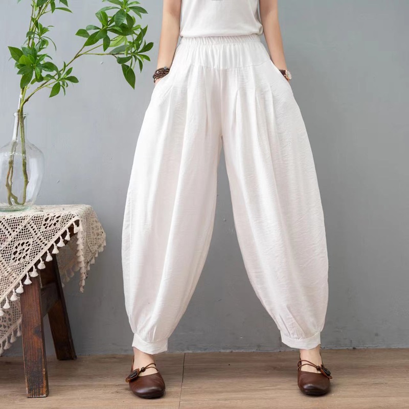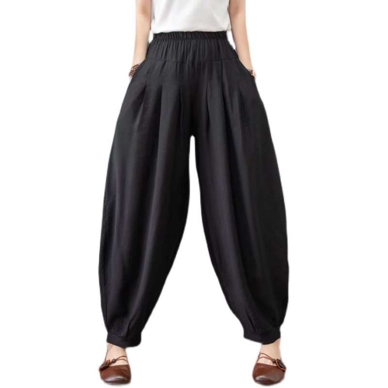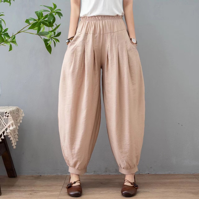 2026春夏新款棉麻灯笼裤女民族风纯色宽松大码肥腿裤萝卜休闲长裤