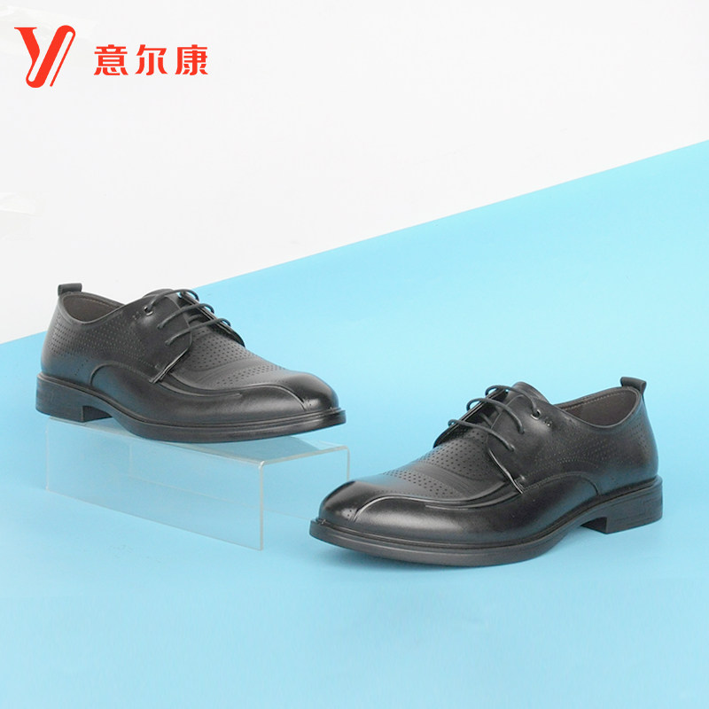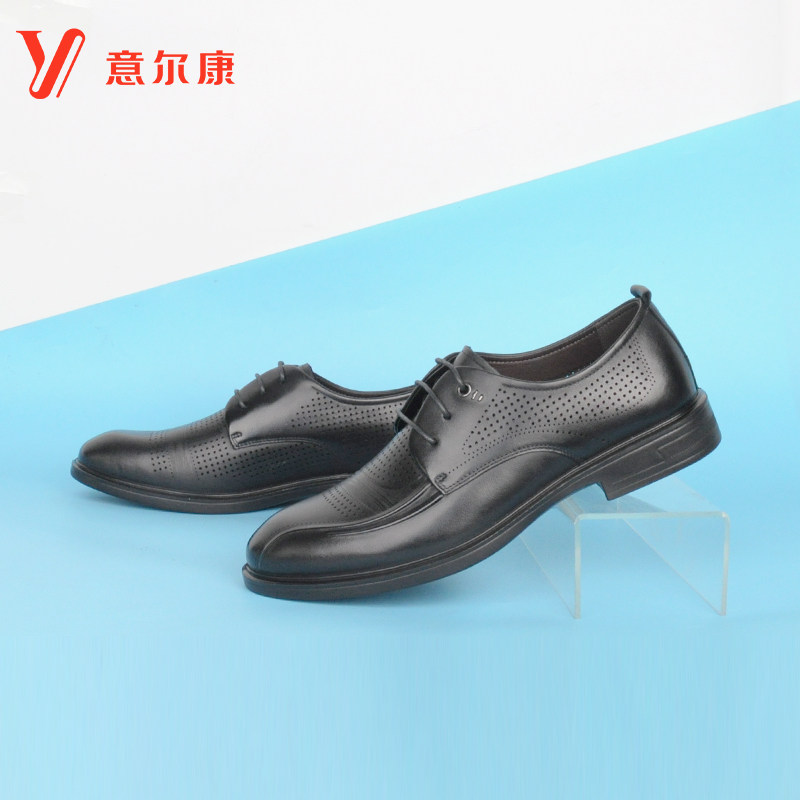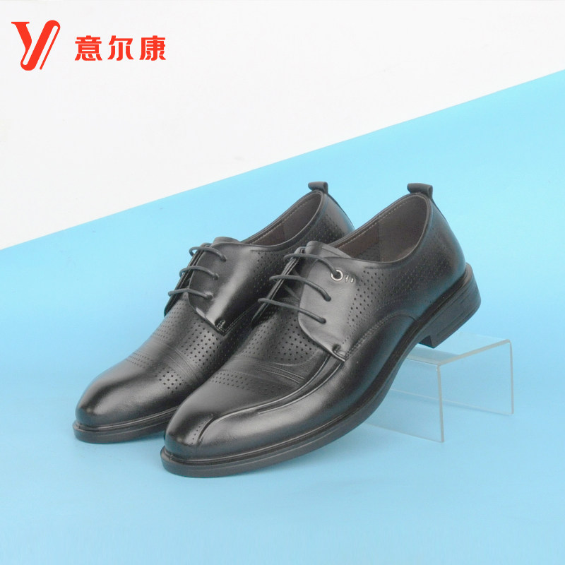 意尔康男鞋2025新款夏季透气网眼镂空正装凉皮鞋男真皮中年爸爸