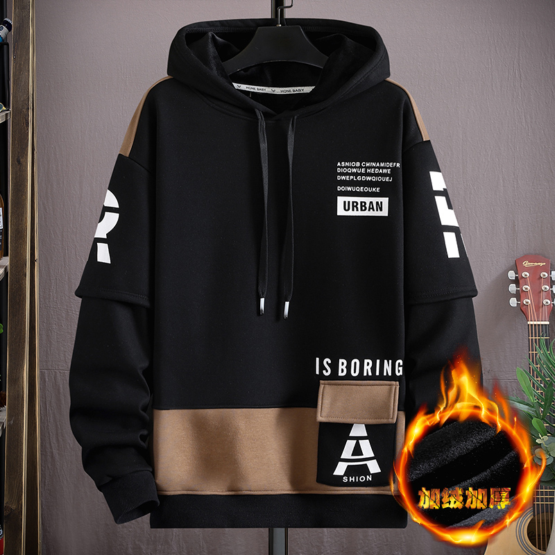 13初中学生连帽卫衣14男孩子秋冬装15加绒16岁大童潮流纯棉上衣服