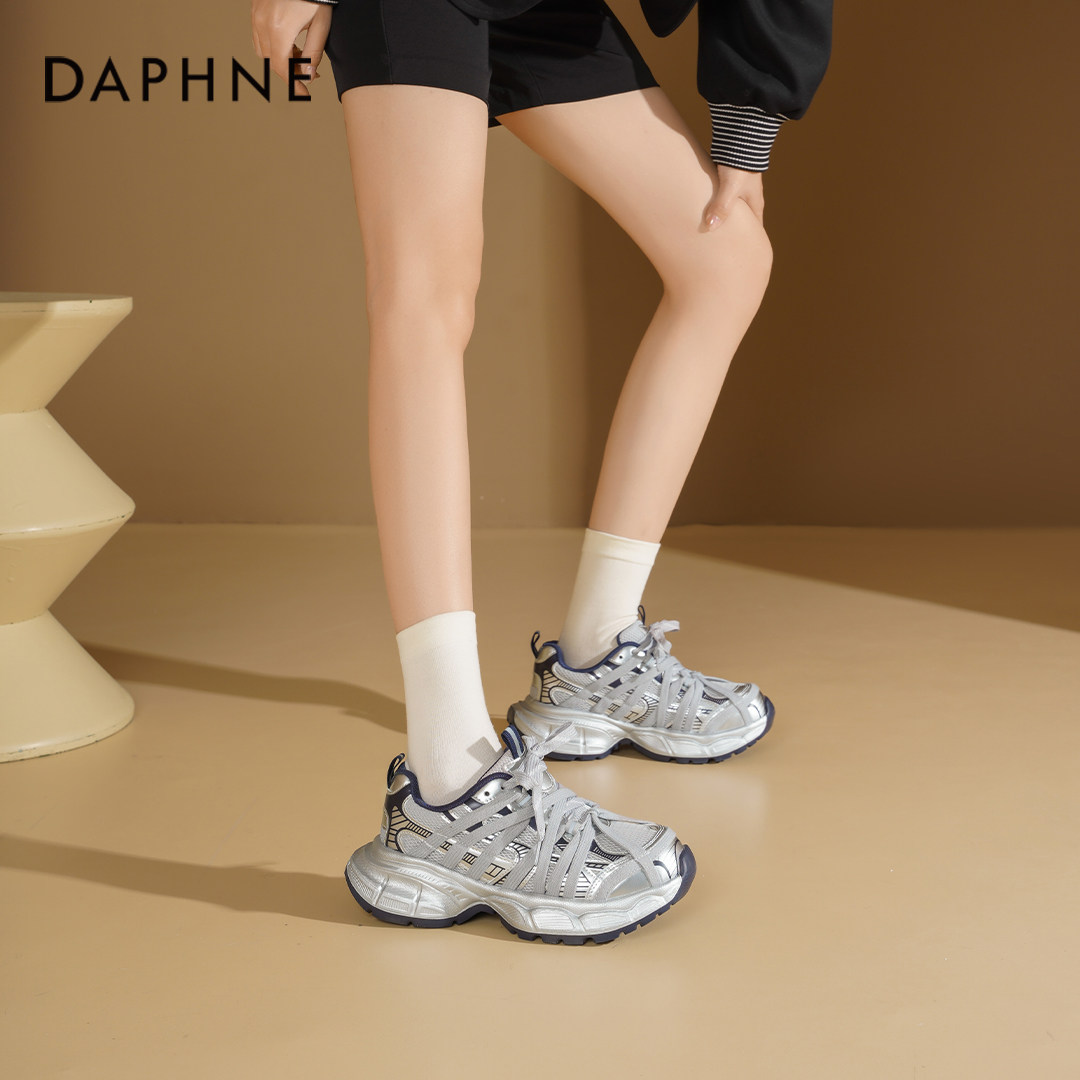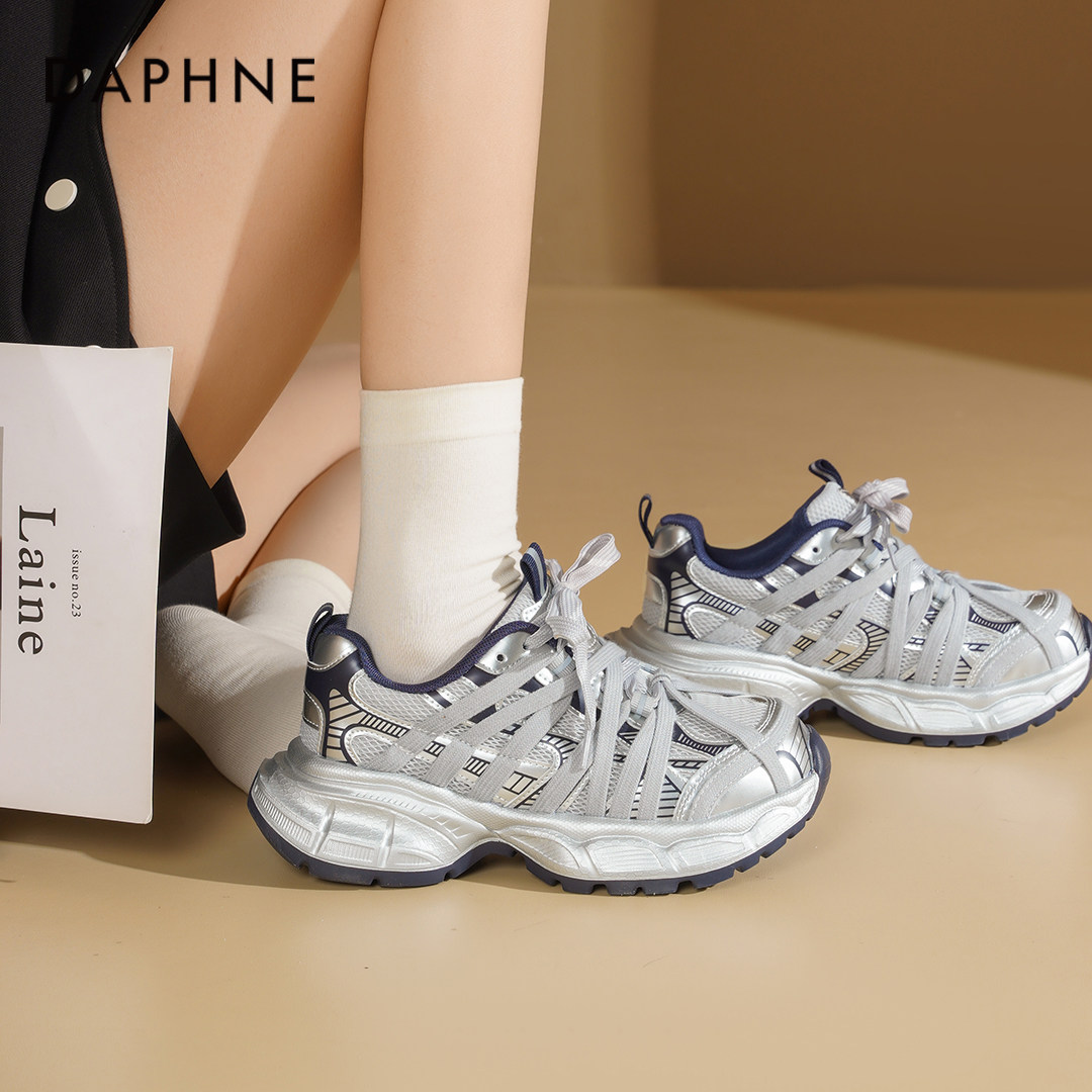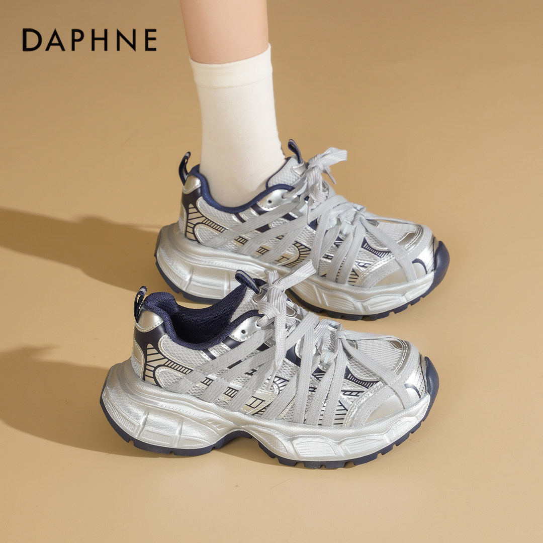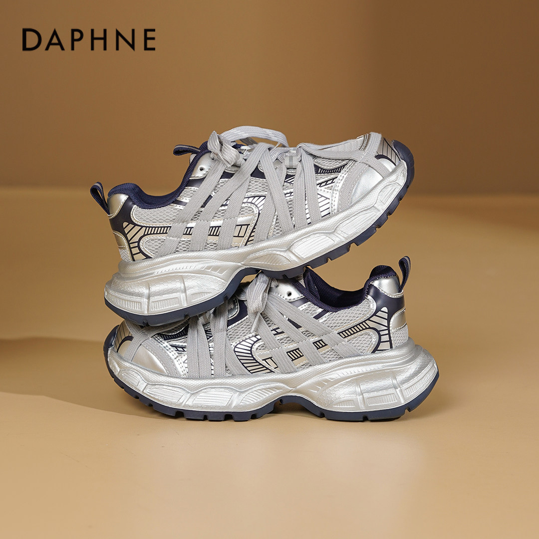 达芙妮银色老爹鞋女2026新款春季厚底增高运动鞋透气休闲百搭鞋子