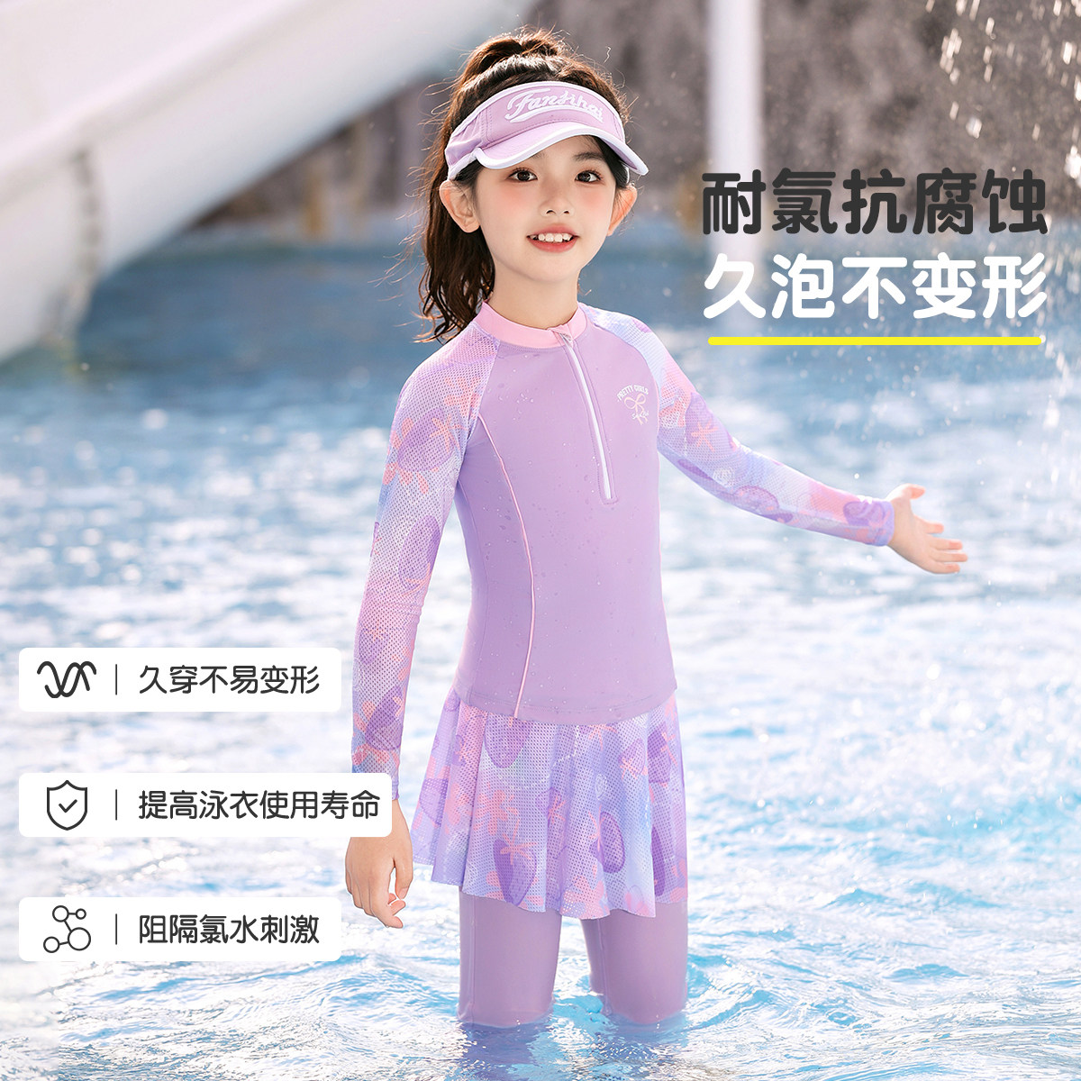 儿童泳衣女孩分体长袖长裤游泳衣温泉保暖女中大童防晒泳衣套装