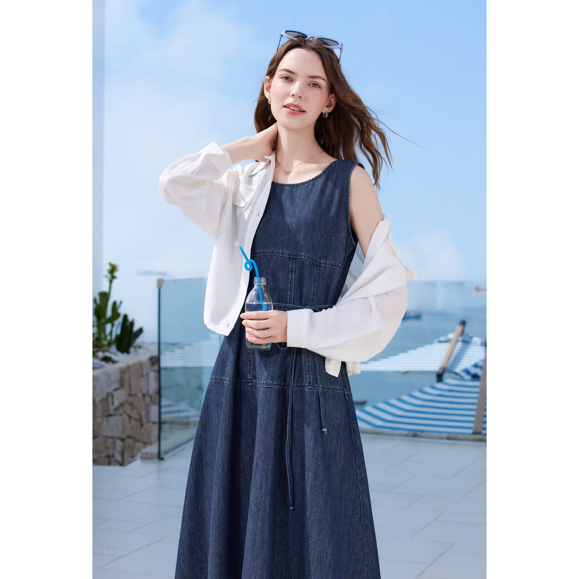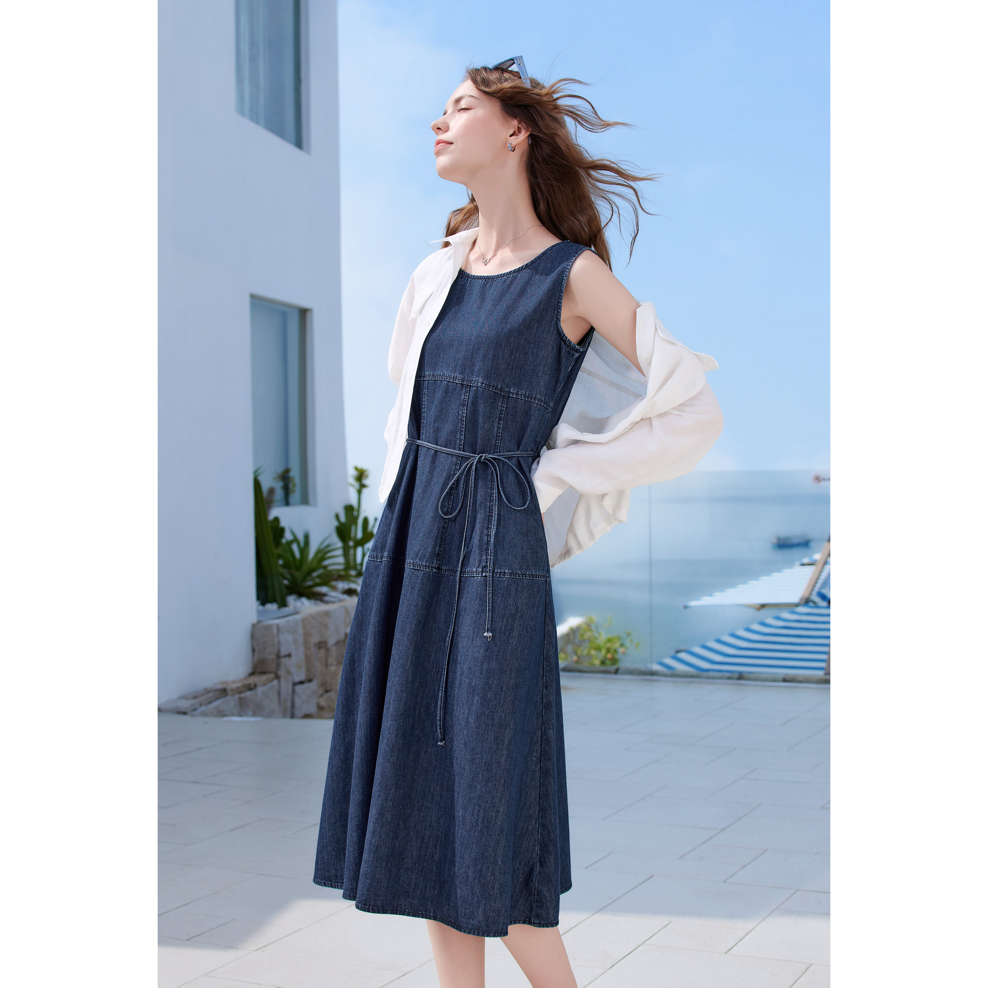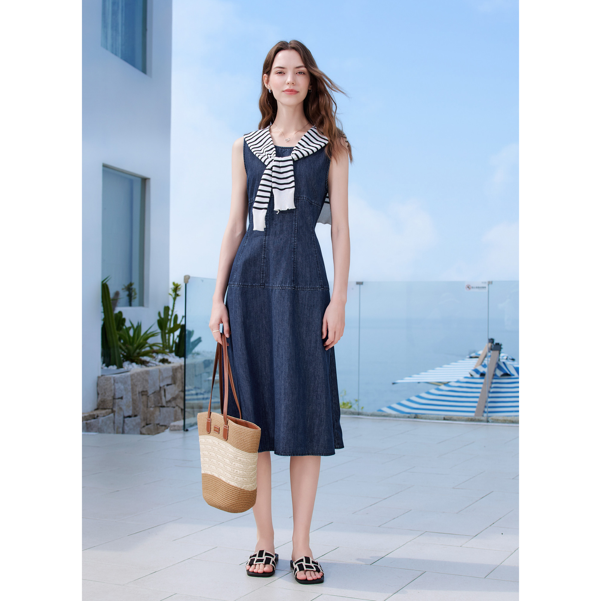 betu百图2026年夏季连衣裙无袖女士圆领不挑肤色日常中长款裙子