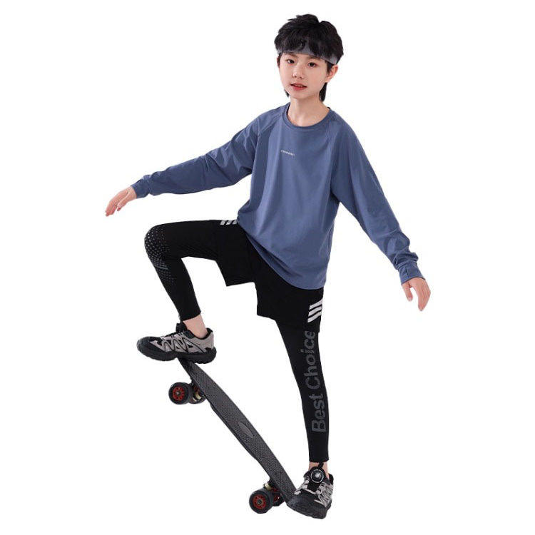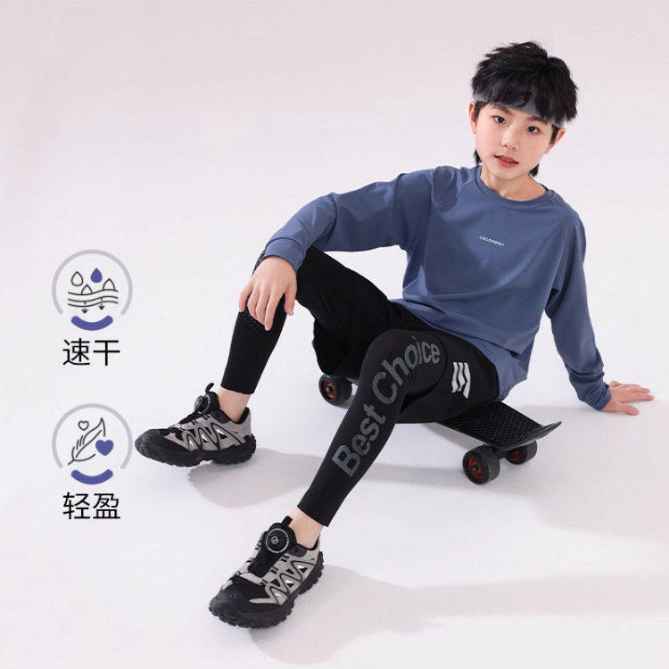 日本秋季男童运动套装长袖裤子羽毛球青少年训练服篮球跑步速干衣