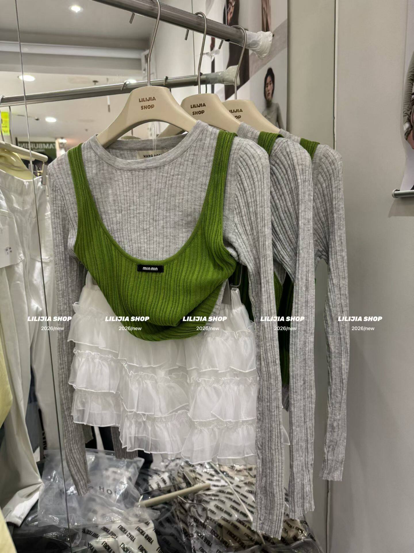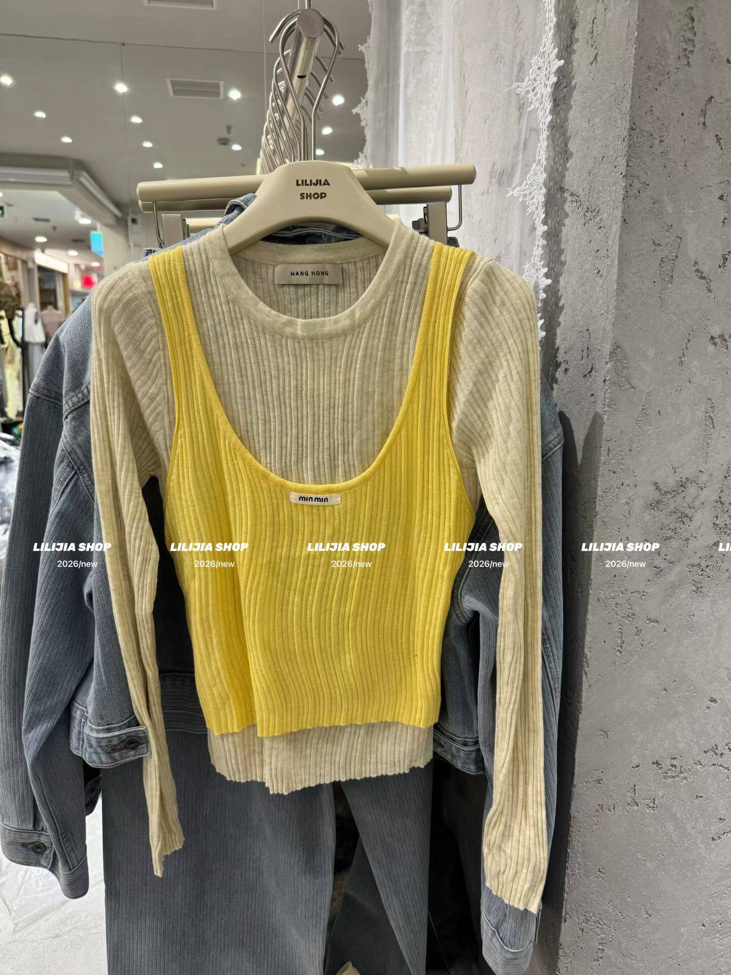 Miss家 2026早春新款撞色假两件薄款针织衫显瘦洋气上衣女