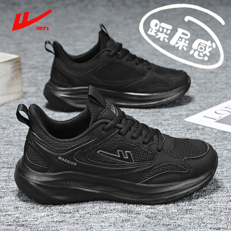 回力女鞋全黑色上班工作鞋春季网面透气不累脚运动鞋踩屎感小黑鞋