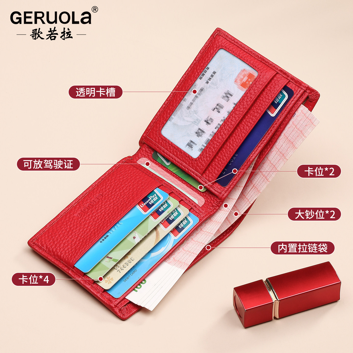钱包女款轻薄小巧短款真皮钱夹二合一小巧轻薄简约折叠皮夹