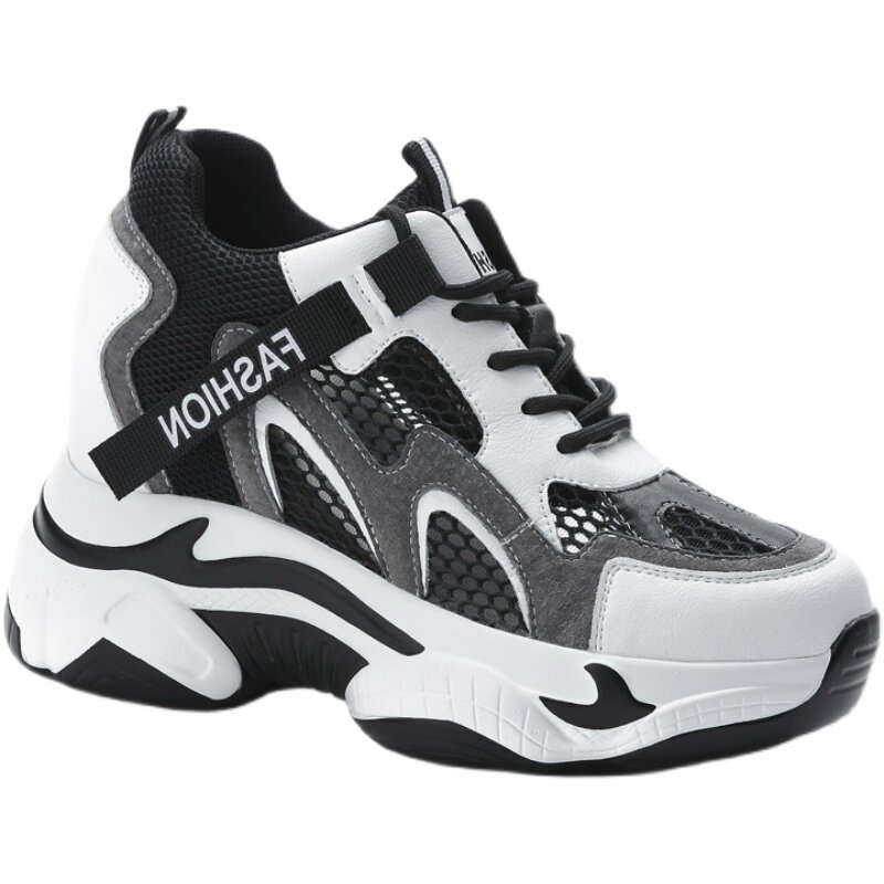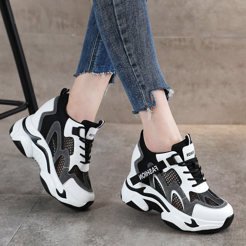 黑色网面透气老爹鞋女内增高ins潮爆款2025新款春夏季休闲运动鞋