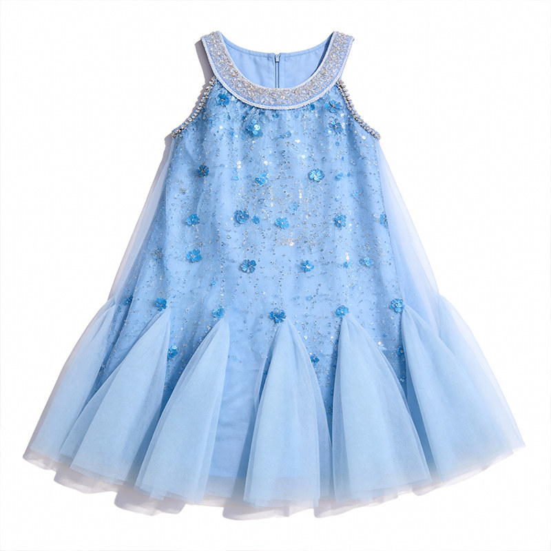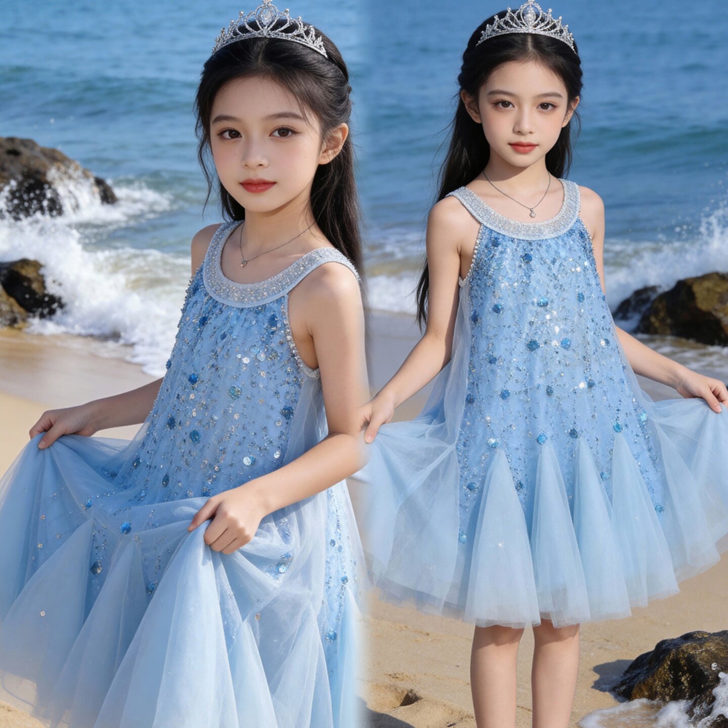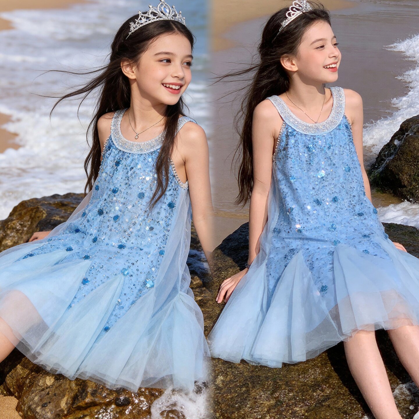 女童裙子夏 薄款高级感公主风女宝挂脖亮片爱莎冰雪奇缘无袖裙子6