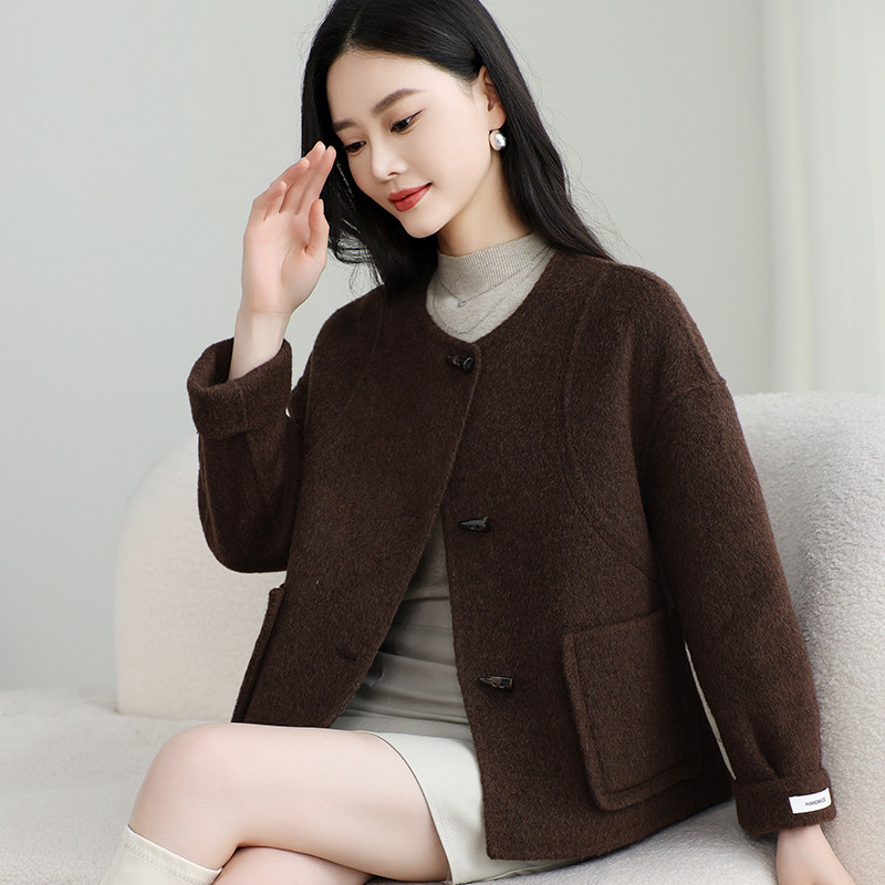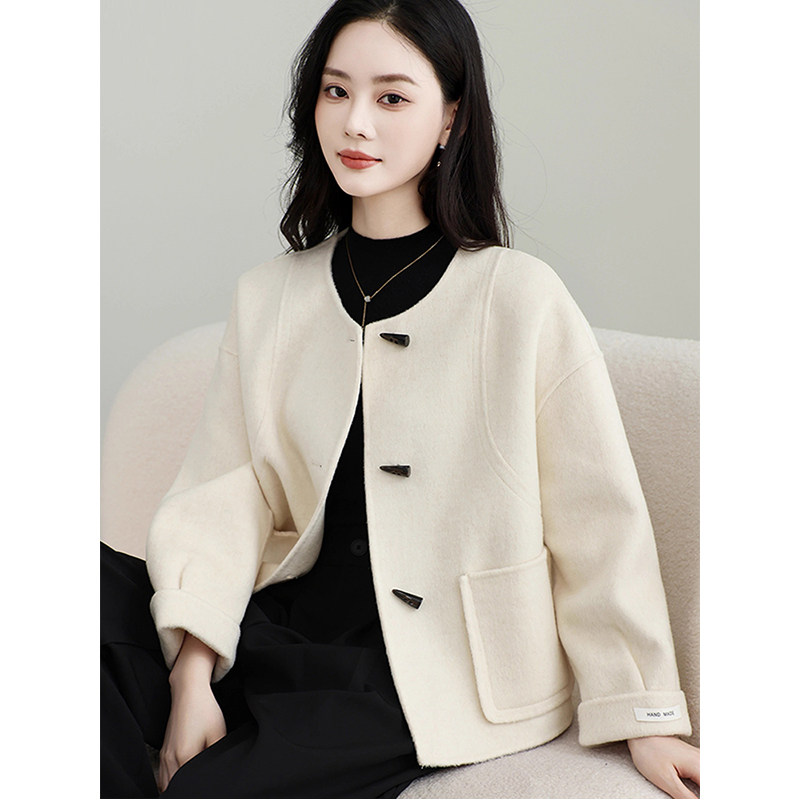 双面羊毛大衣女短款2025年秋冬新款牛角扣时尚高级感羊毛呢子外套