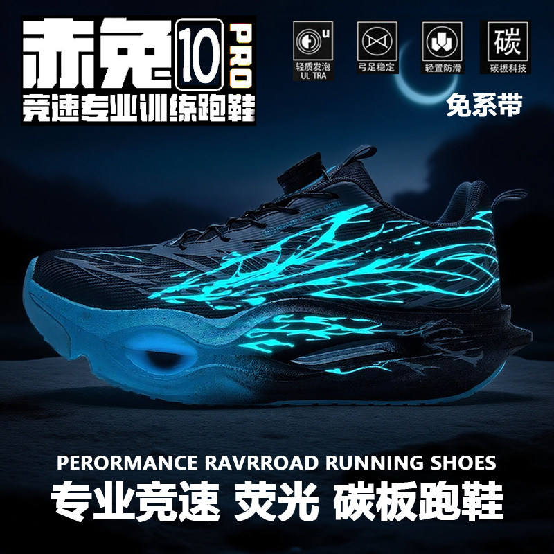 新款碳板跑鞋男女款赤兔10竞速运动鞋童鞋减震回弹夜光儿童跑步鞋