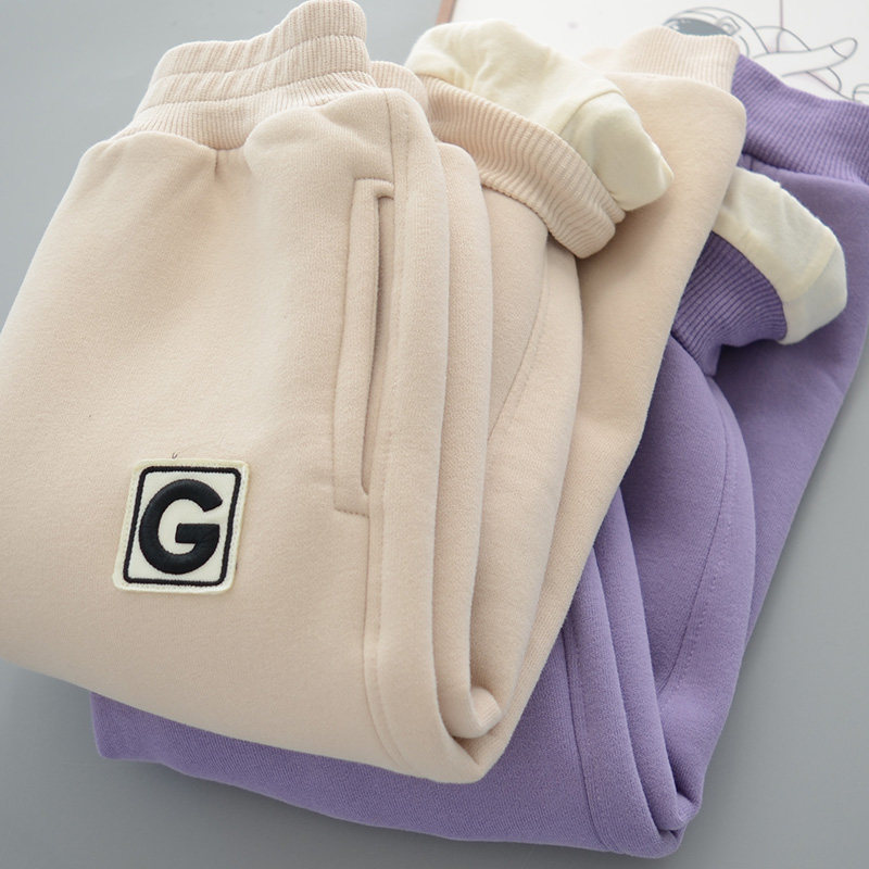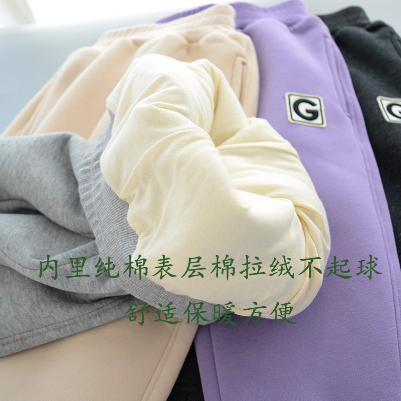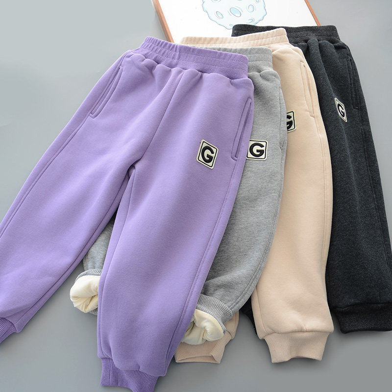 儿童双层加厚裤子 男童女童内里加棉布保暖运动裤 软糯长裤