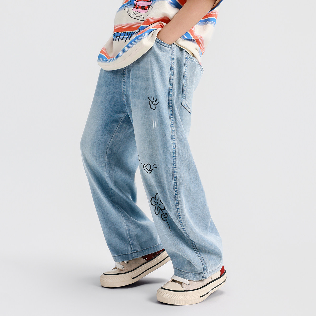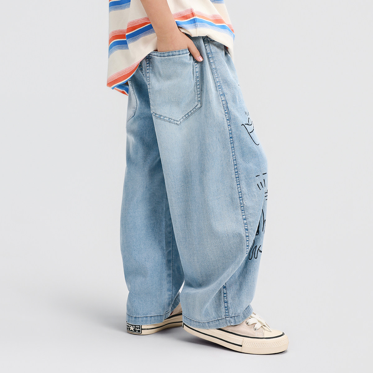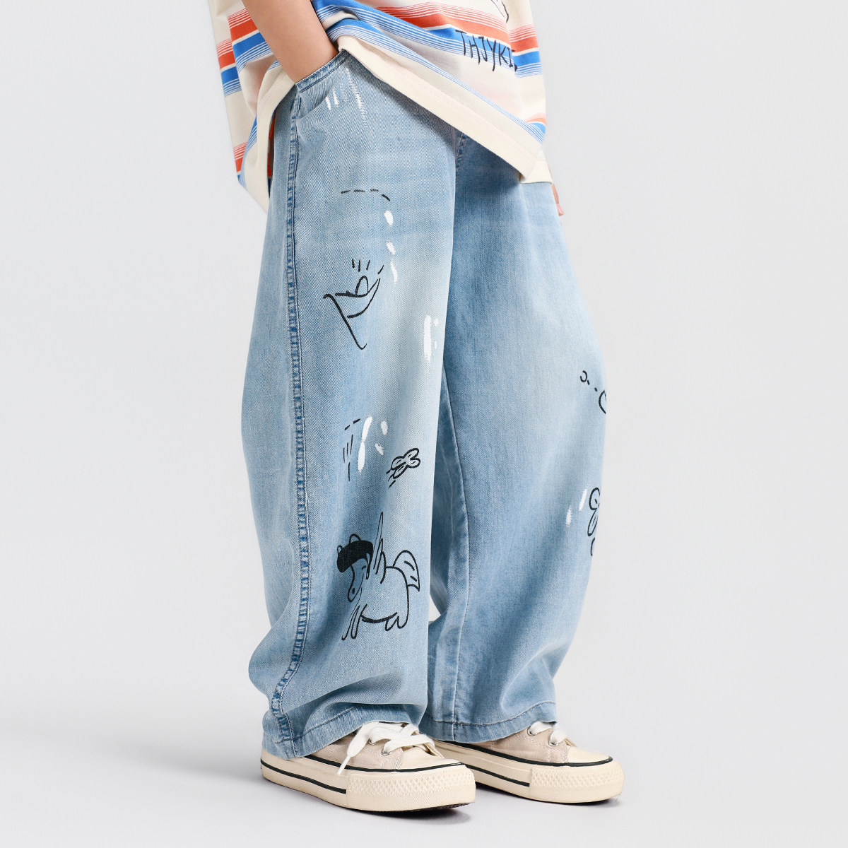 男童夏季轻薄冰丝牛仔裤子2026新款中大童涂鸦坠感时髦长裤