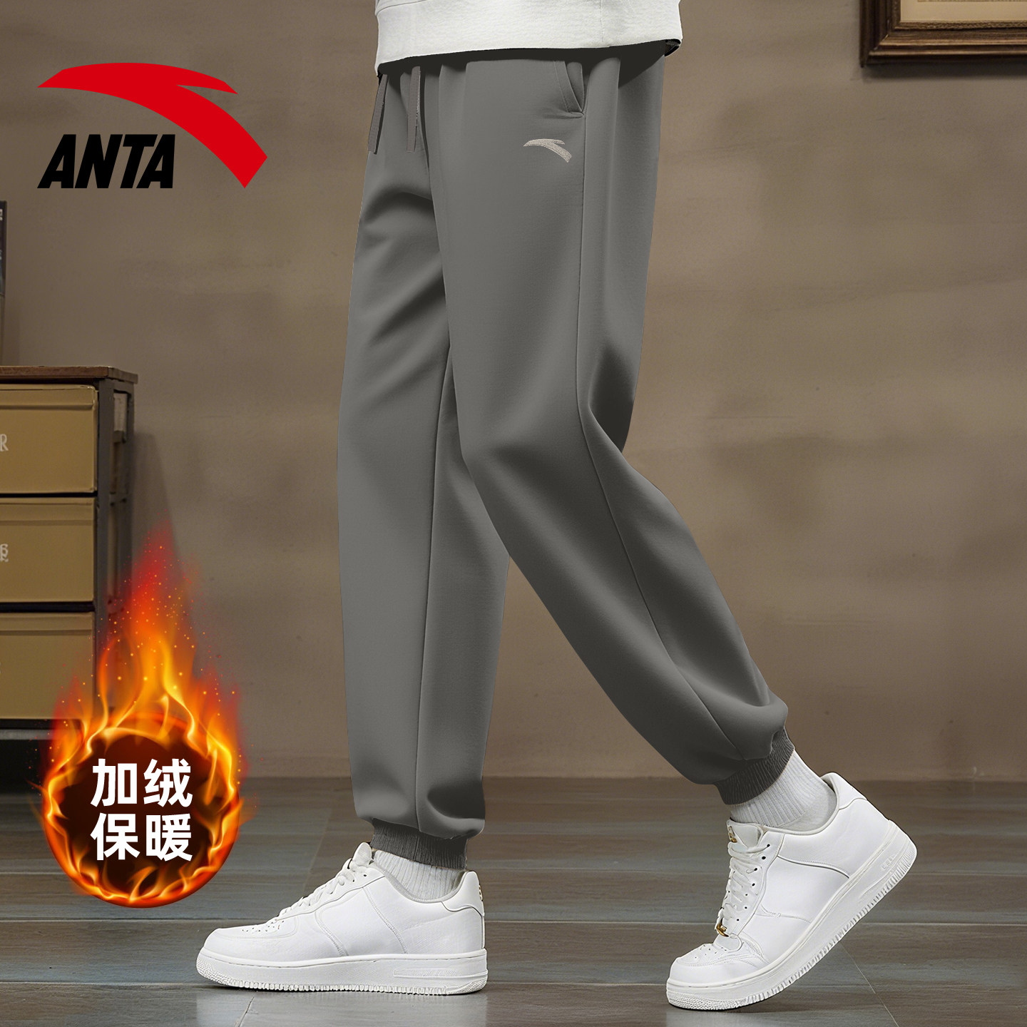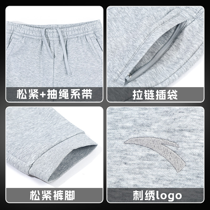 安踏灰色运动裤男休闲加绒加厚保暖外穿春季新款青少年卫裤长裤子
