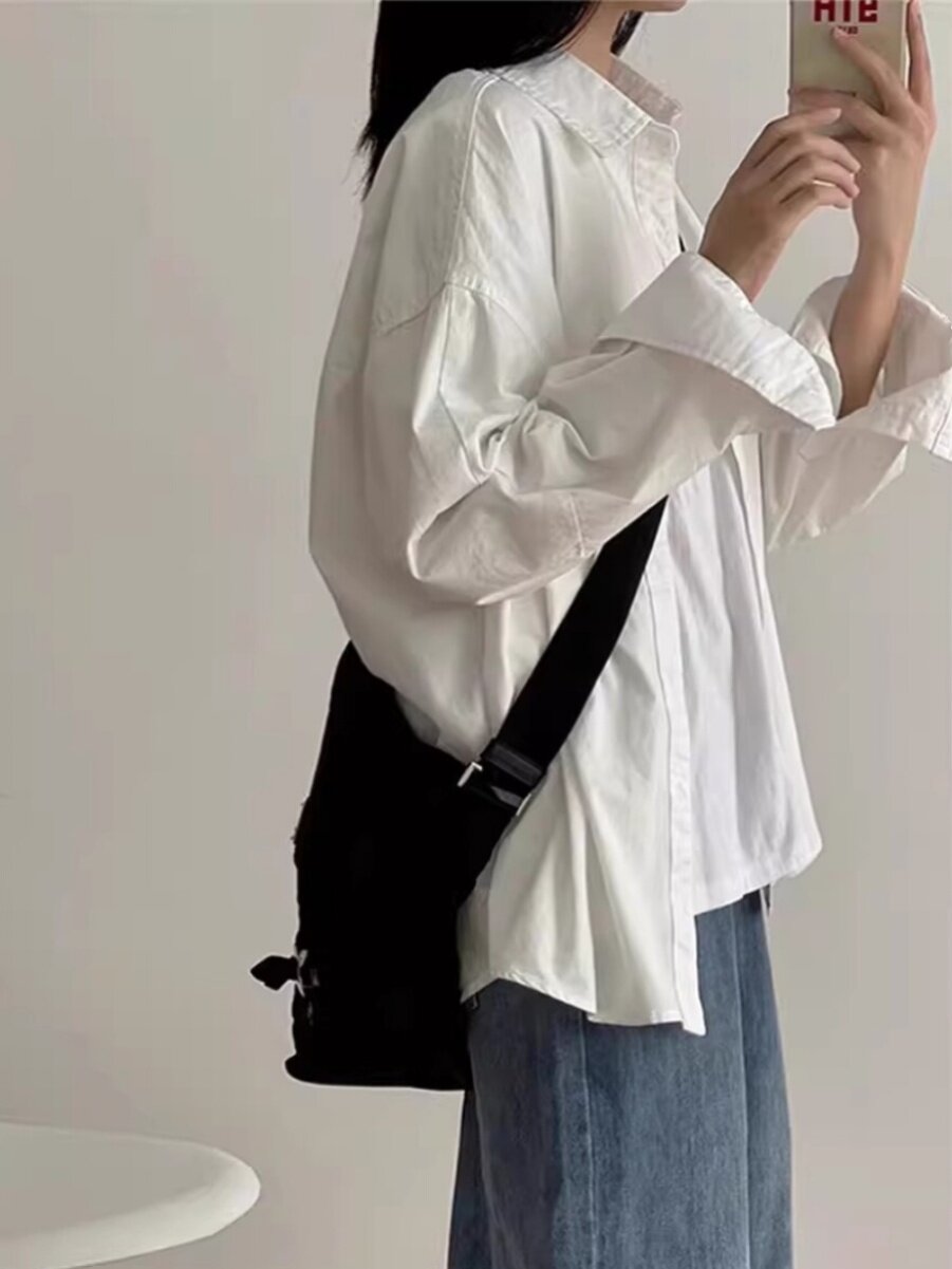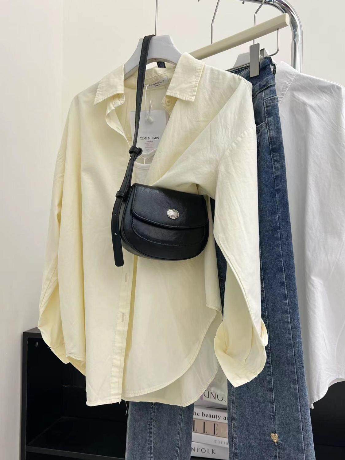 春装女款2024年新款浅绿色纯棉长袖衬衫女法式轻奢上衣夏季外套