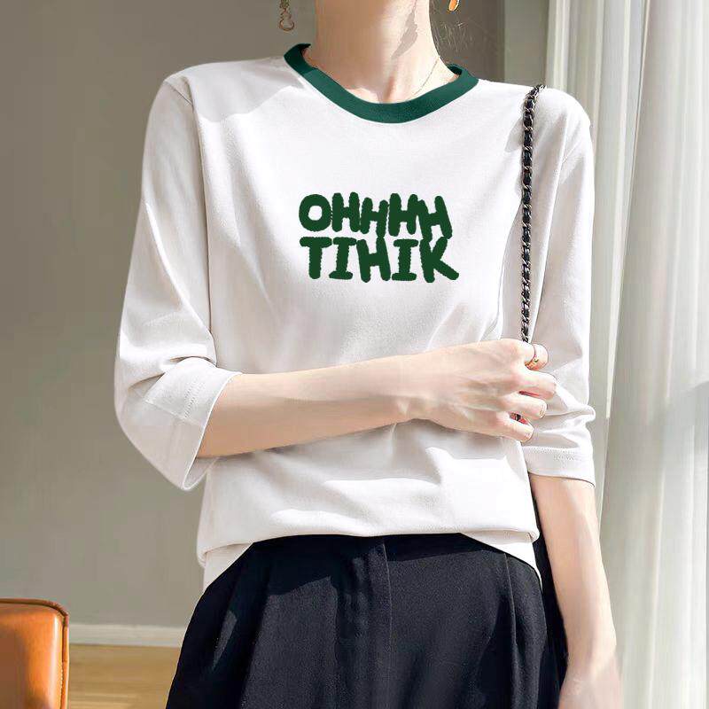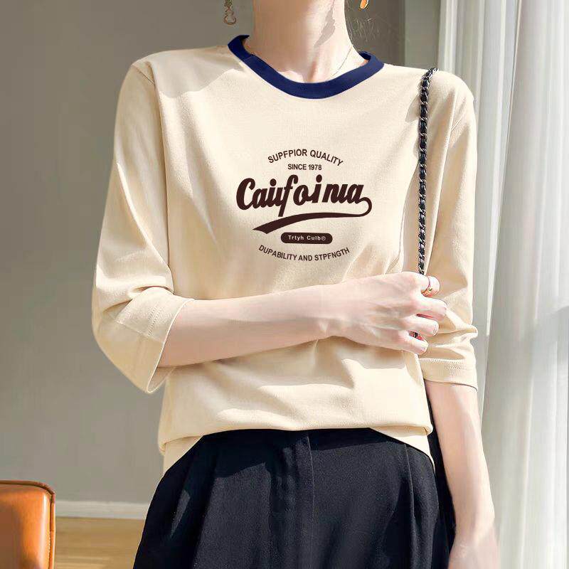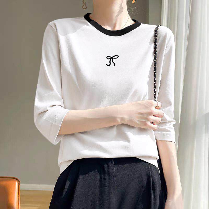 2025年新款春装女款纯棉中袖上衣女七分袖高端设计感小众宽松小衫