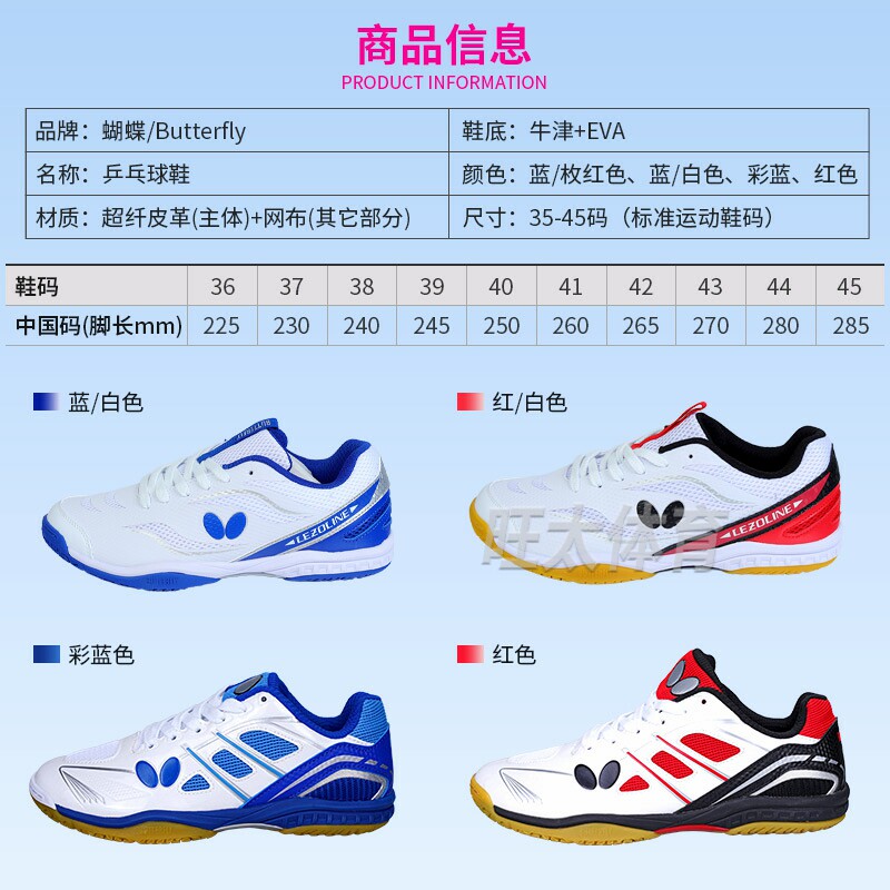 蝴蝶牌乒乓球鞋专业男鞋女比赛男兵乓专用球鞋透气室内儿童运动鞋