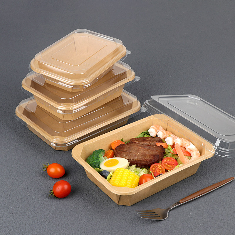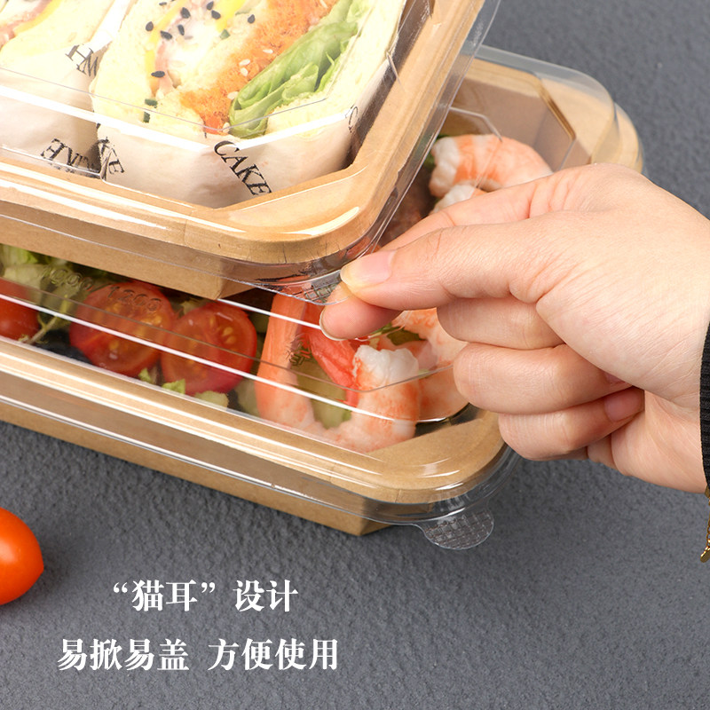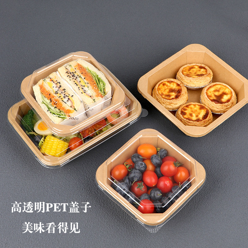 加厚正方形八角碗牛皮纸餐盒一次性打包盒轻食沙拉盒便当盒带盖子