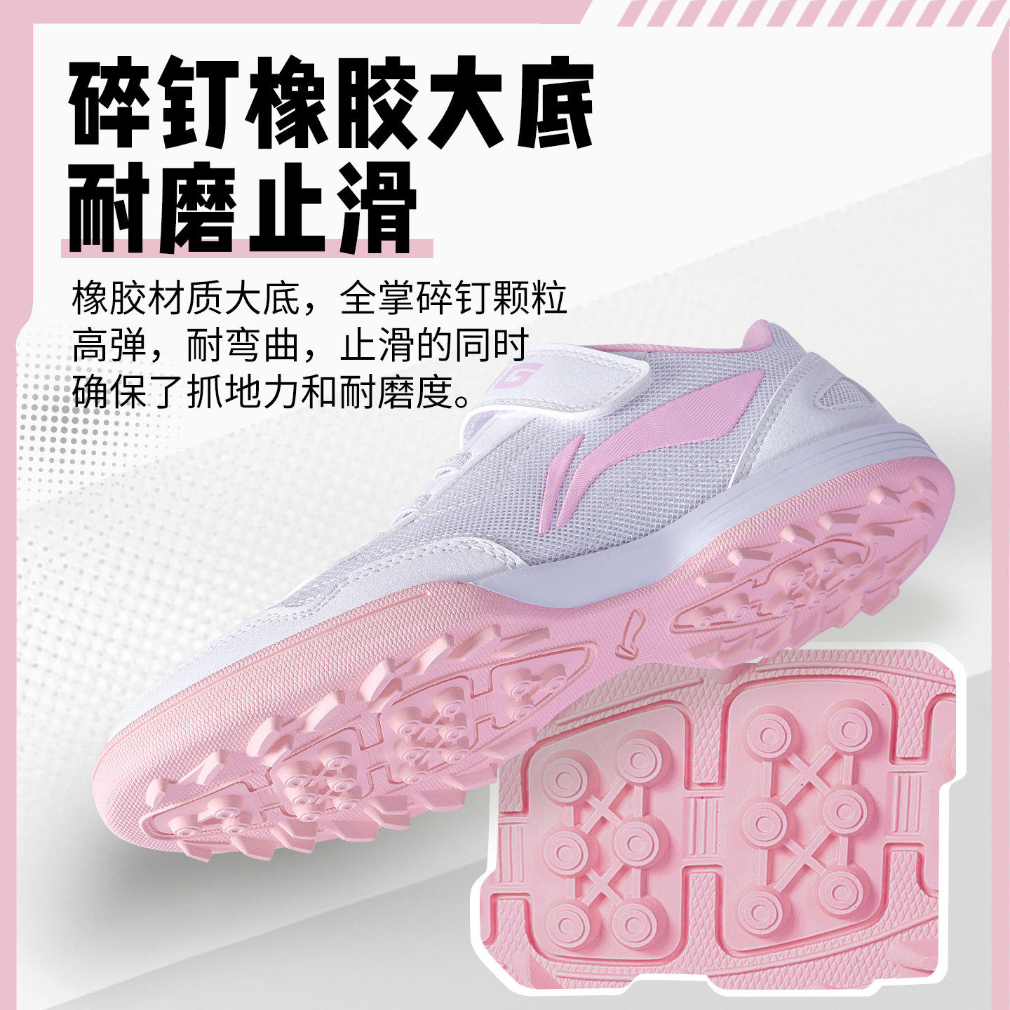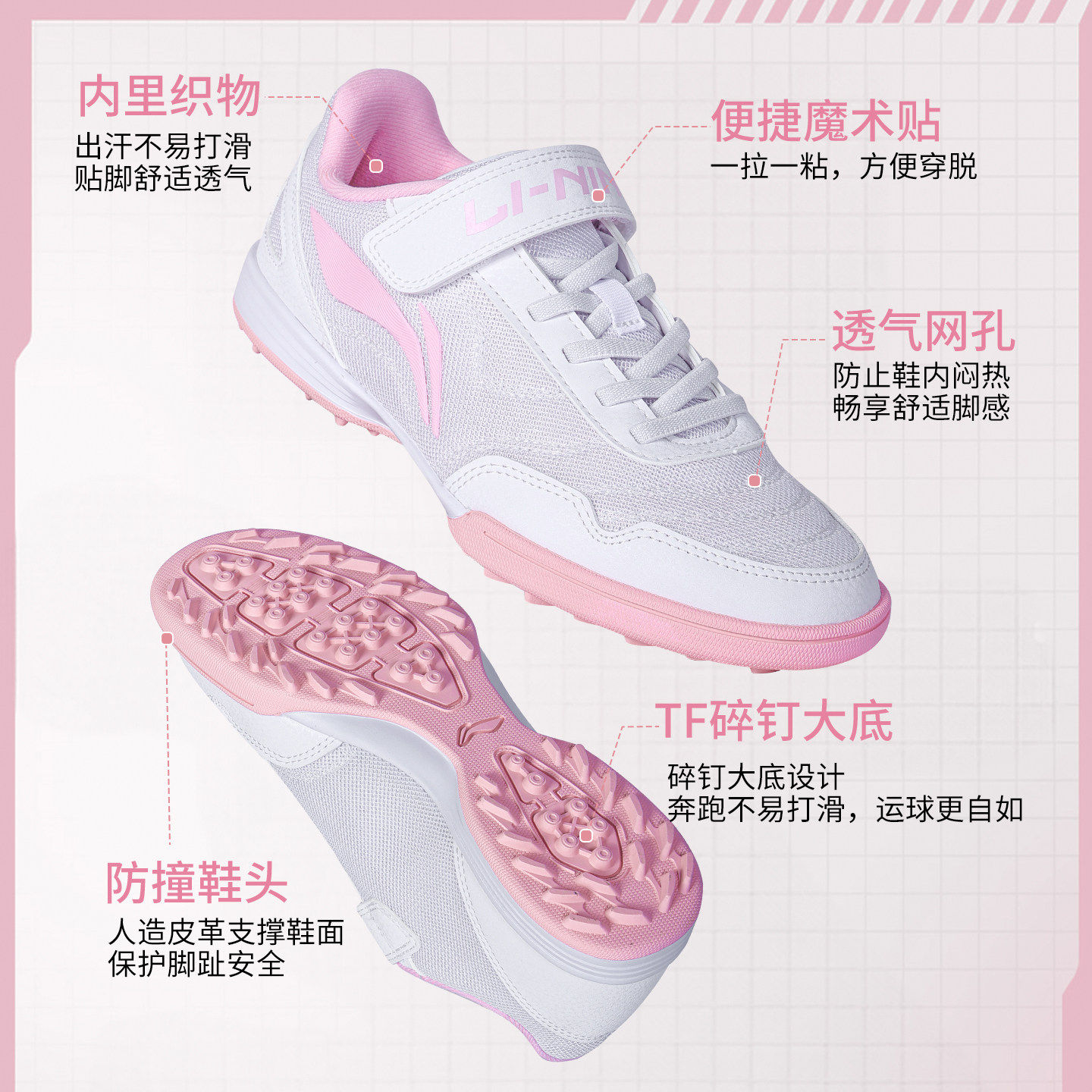 李宁儿童足球鞋女童女孩粉色款TF碎钉青少年小学生专用专业训练鞋