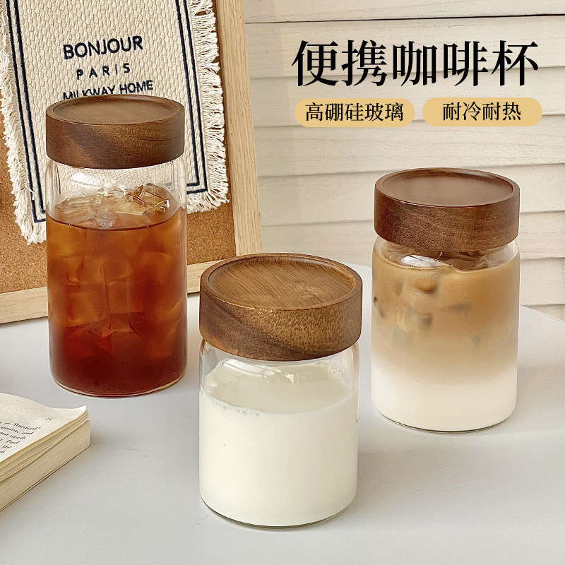 便携外带玻璃杯带盖喝水杯女耐高温个人专用茶杯密封随行咖啡杯子