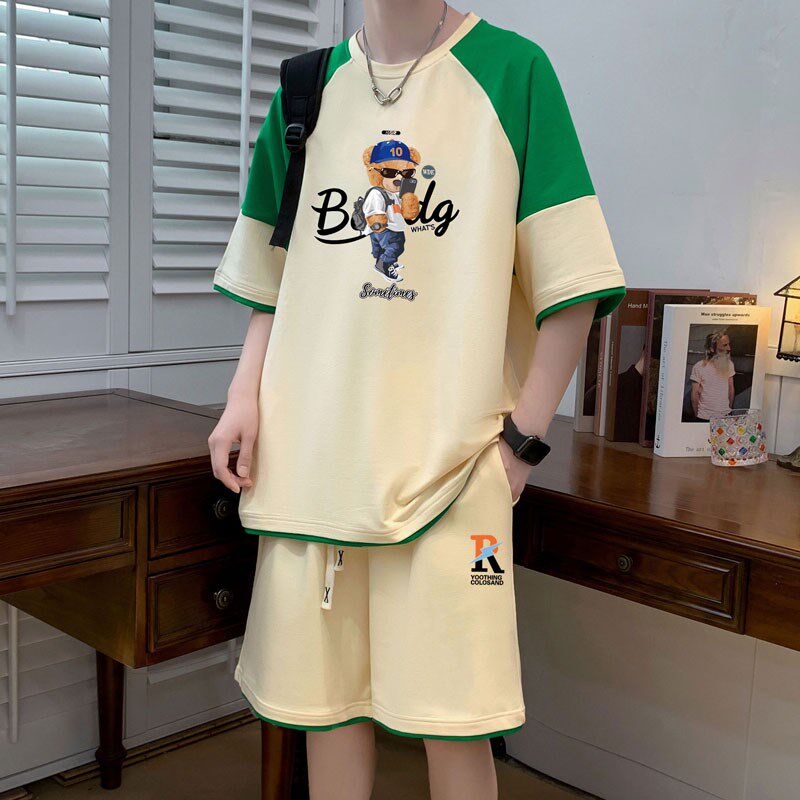 青少年运动套装大男孩初中学生纯棉短袖t恤潮流帅气大童百搭夏装