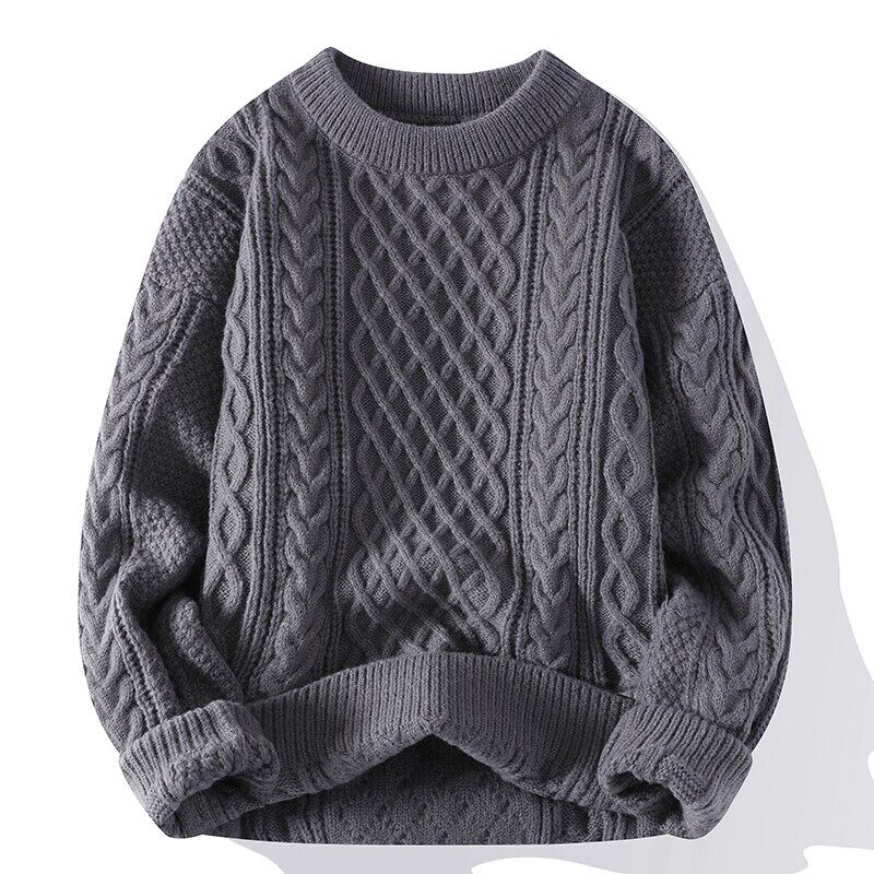 本命年红色毛衣男秋冬季圆领潮牌高级感麻花针织衫情侣毛线衣外套
