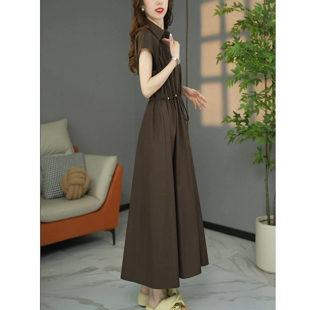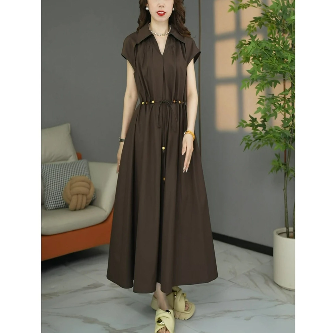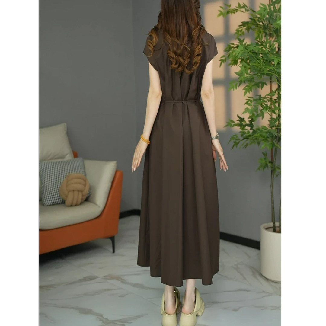 时尚气质绑带显瘦短袖连衣裙女2026夏新款大码宽松中长款收腰裙子