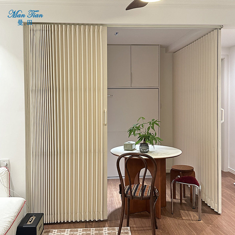 曼田新款国产折叠门PU皮和布材质金属结构推拉门卧室衣柜支持定制