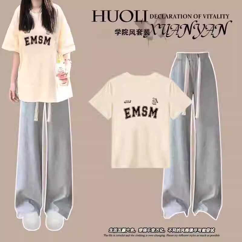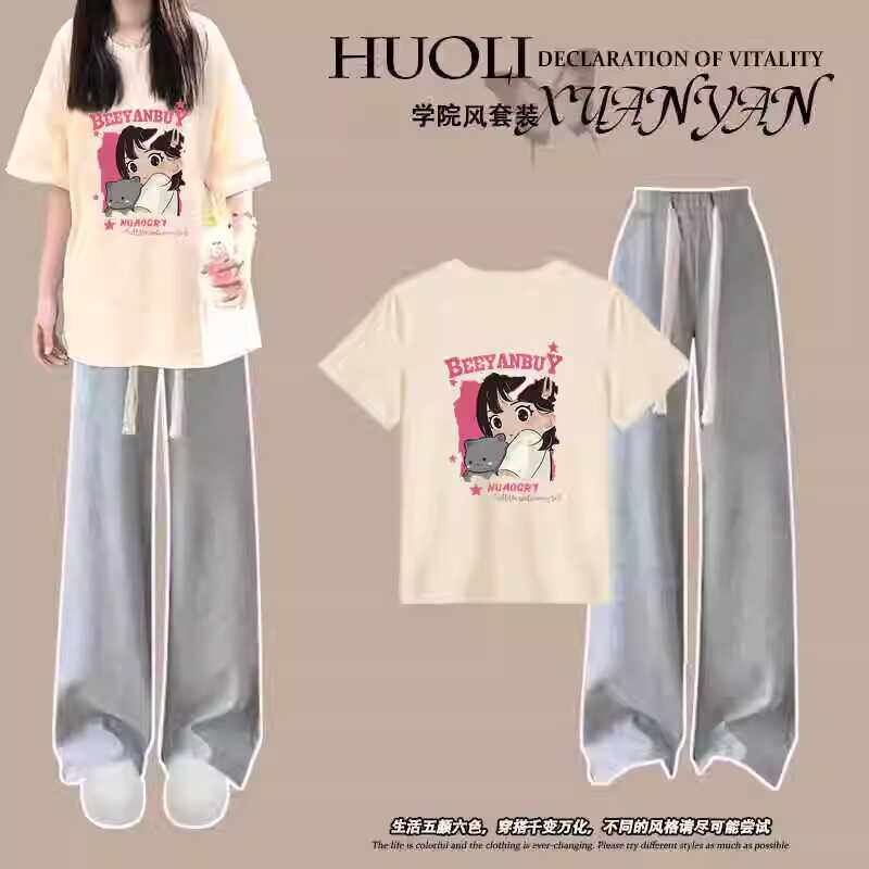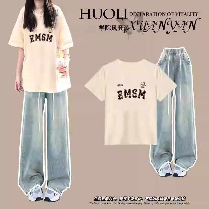 15岁初中生14女孩休闲短袖上衣套装2026夏季17高中生牛仔裤两件套