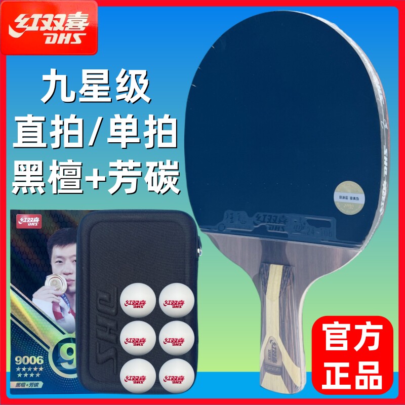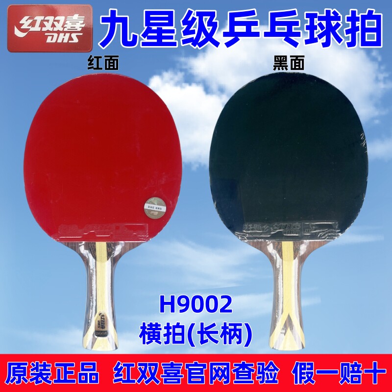 红双喜九星级乒乓球拍横拍H9002长柄碳素底板直拍H9006短柄9星级