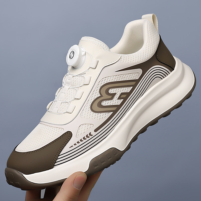 网面旋钮男鞋2026年新款实心底轻便透气运动休闲鞋百搭男散步鞋子