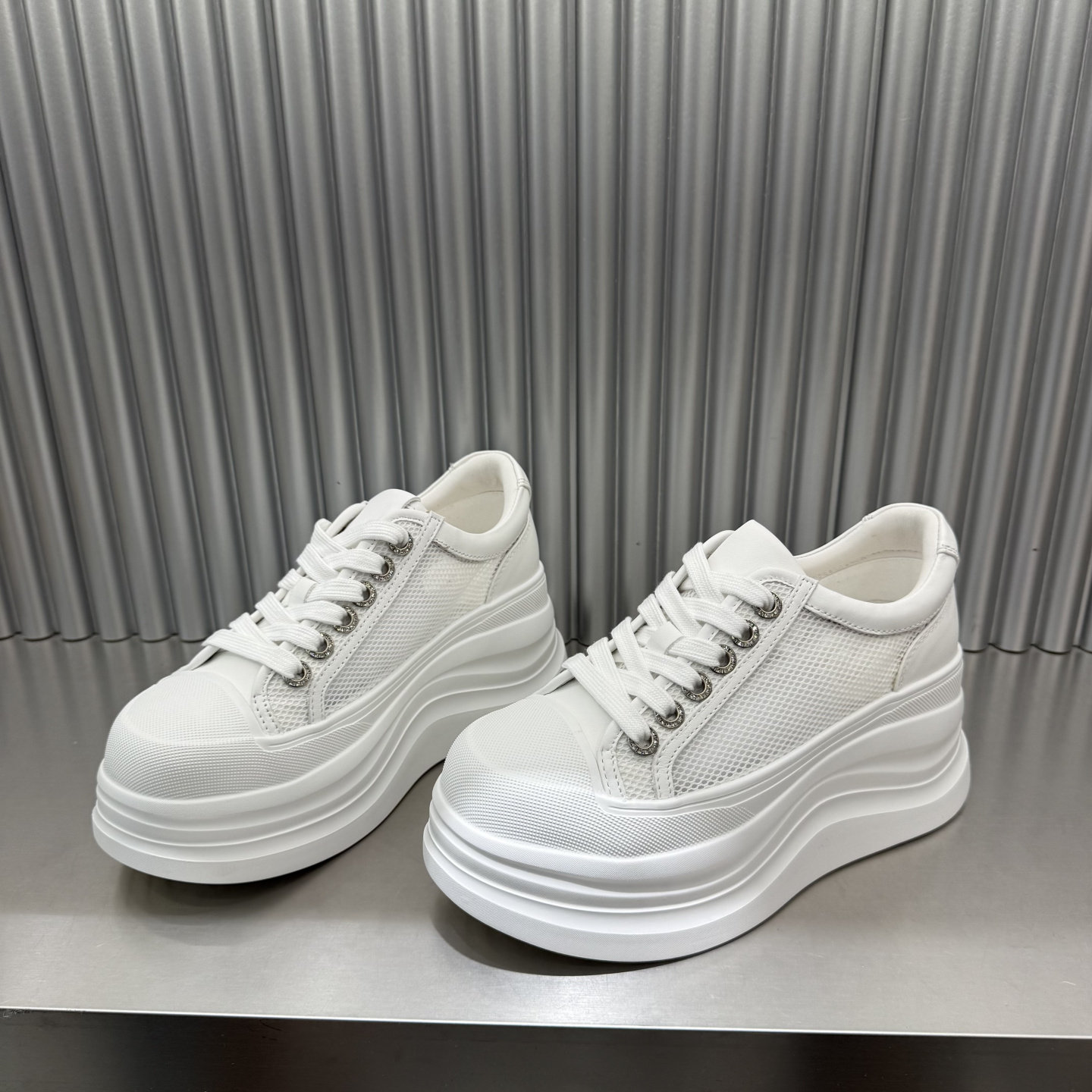 欧货2026春夏新款真皮女鞋系带增高欧洲站小众显脚瘦松糕鞋小白鞋