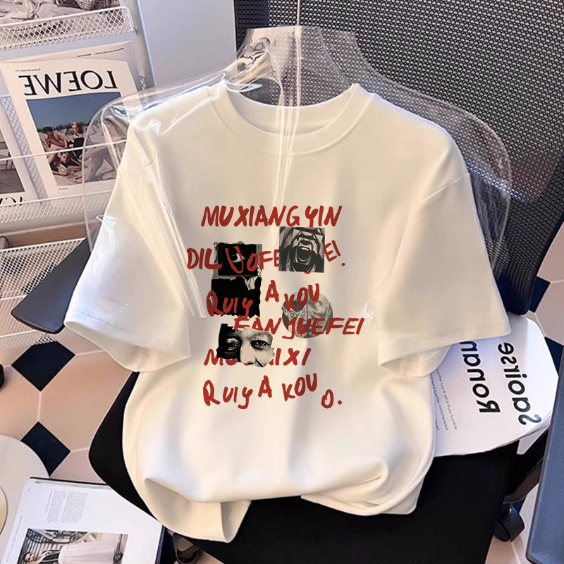 白色正肩短袖女t恤夏宽松慵懒风大码胖mm纯棉上衣女2026新款爆款