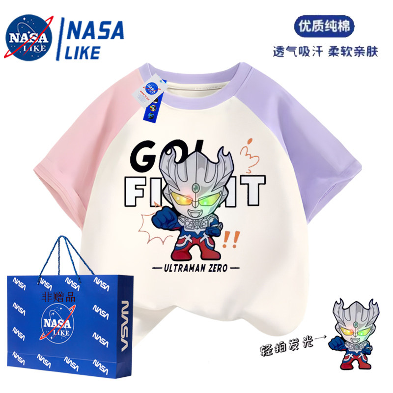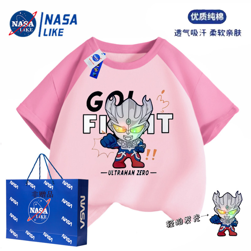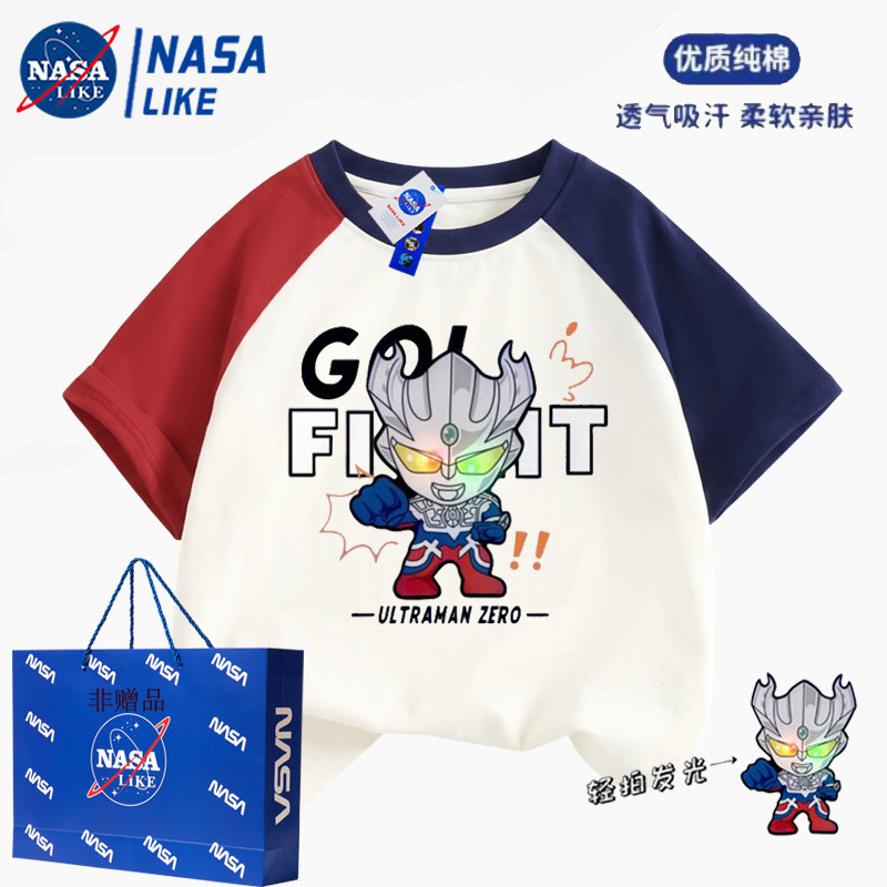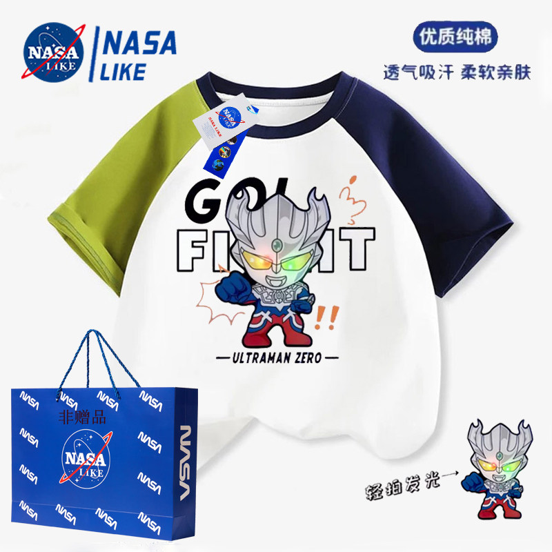 NASA儿童短裤纯棉t恤套装夏季男女童装赛罗奥特曼亮灯短袖两件套