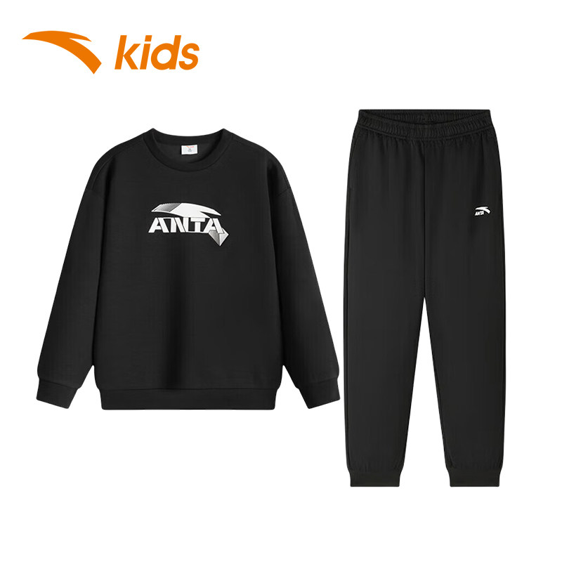 安踏童装男童套头卫衣长裤套装2026秋冬新款儿童运动服中大童秋装