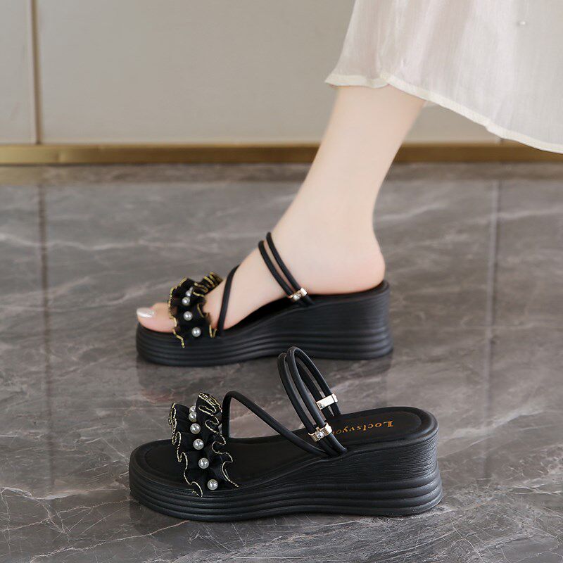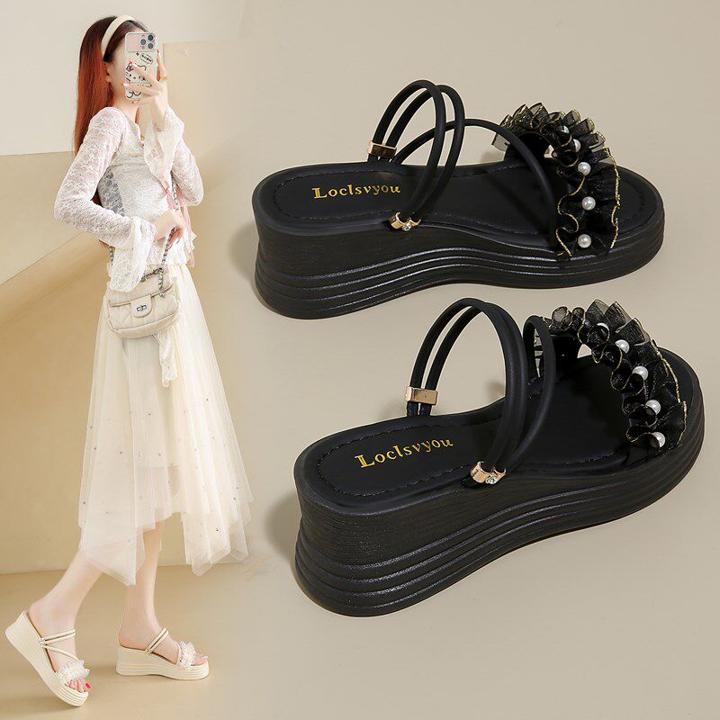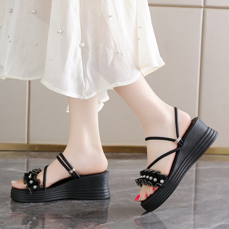 小个子厚底增高坡跟凉鞋女款2025夏季外穿配裙子不累脚凉拖鞋34码
