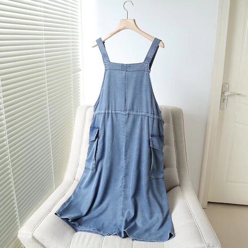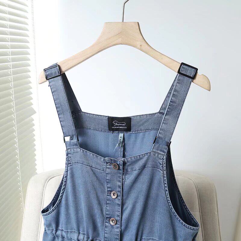 实拍法式盐系牛仔背带裙女夏薄款桔梗初恋小个子减龄茶歇连衣裙