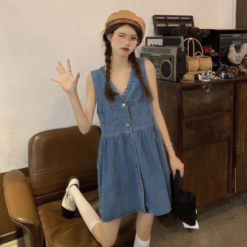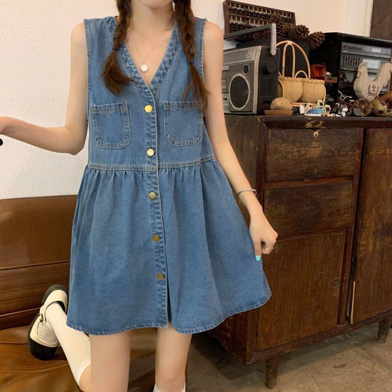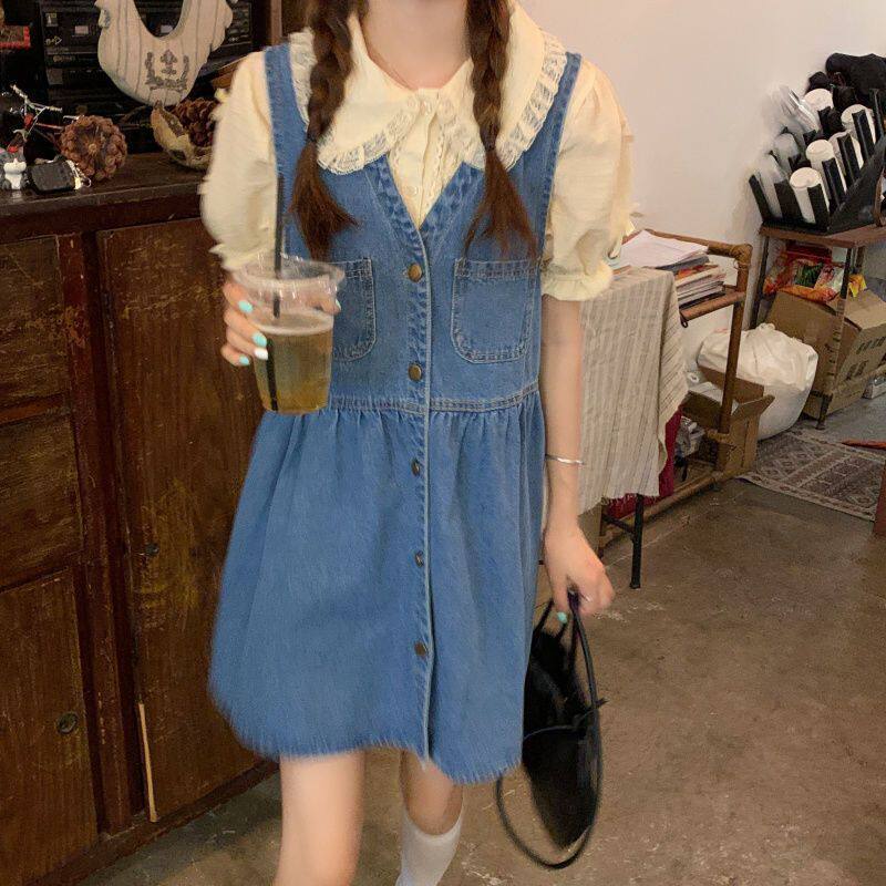 牛仔背带裙女夏薄款套装小个子法式短裙显瘦背心裙子连衣裙两件套