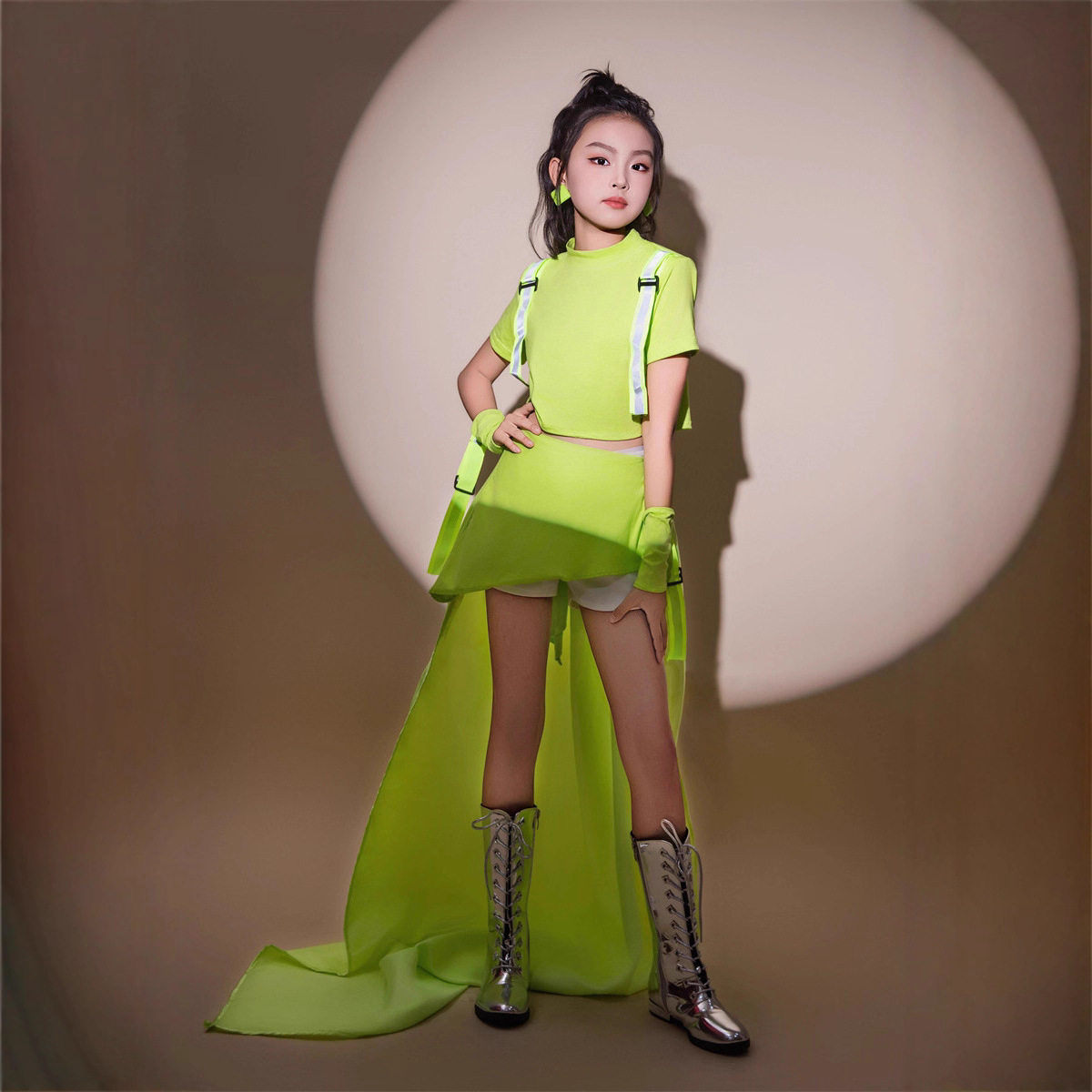 2026新款《荧光绿》女童T恤裤裙套装儿童走秀拖尾9潮酷可日常中