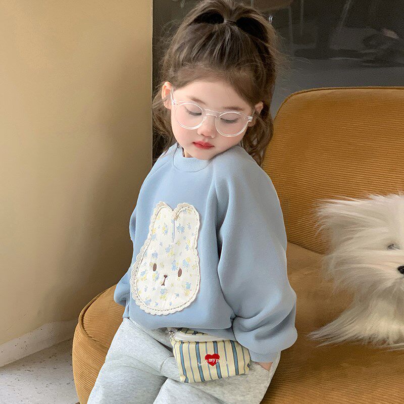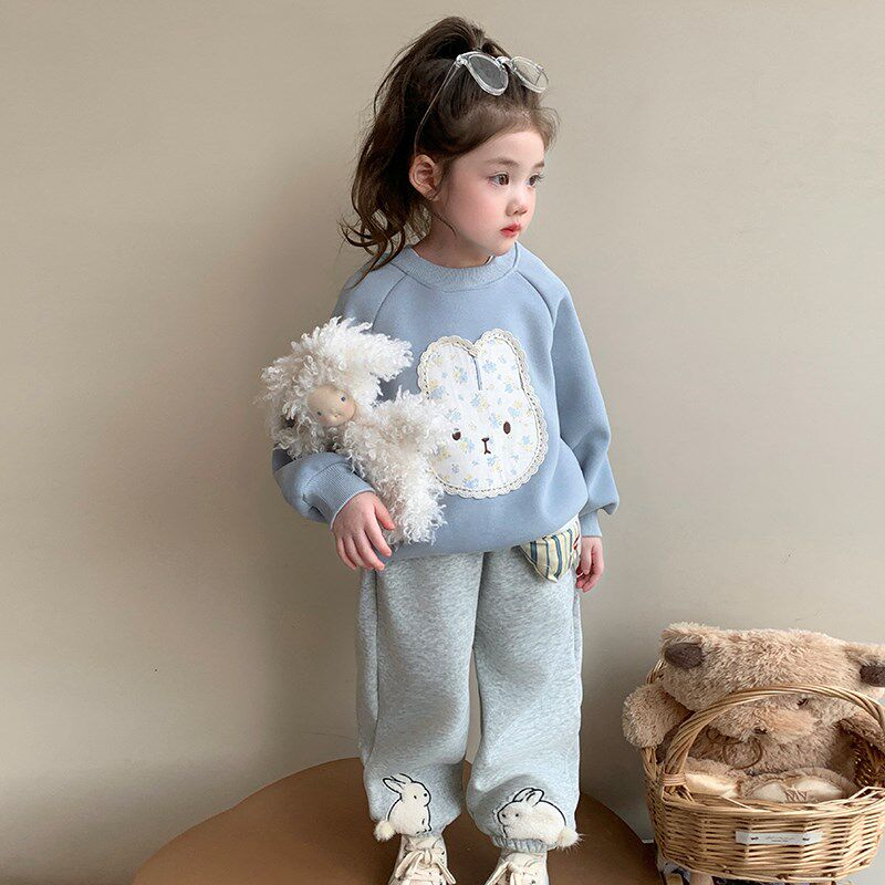 儿童休闲套装加绒花边女小童运动两D件套加厚女童冬装卫衣卫裤时